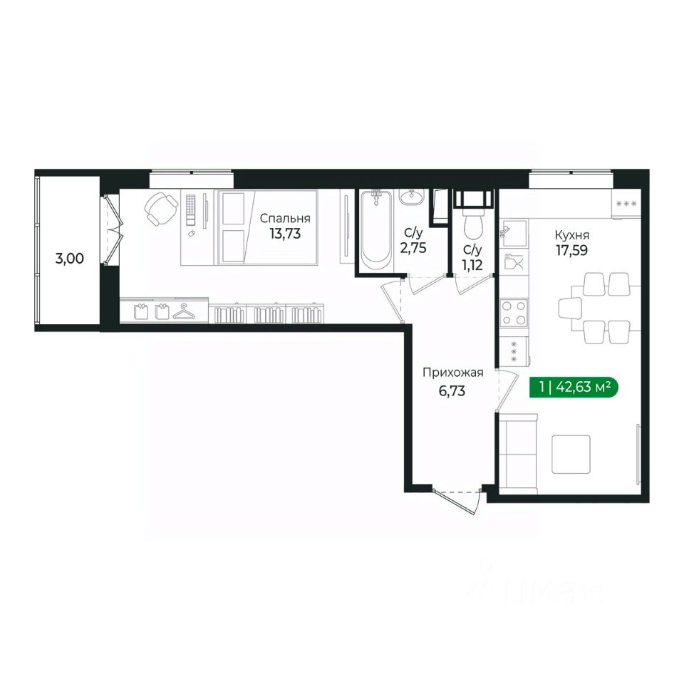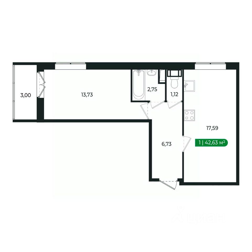 Напрямую продаётся уютная 1-комнатная квартира 27 общей площадью 42,63 м2 во II очереди в жилом комплексе Сертолово Парк от застройщика ГК Алгоритм.