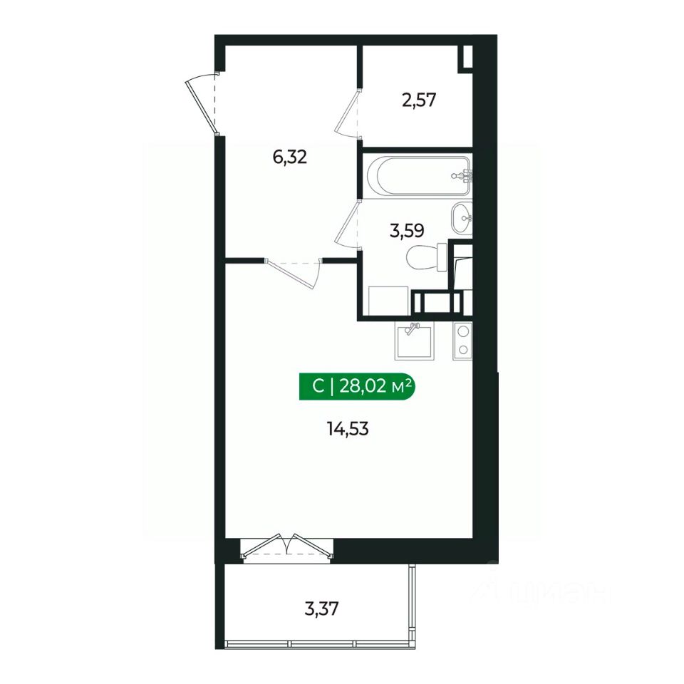 Напрямую продаётся уютная студия 39 общей площадью 28,02 м2 во II очереди в жилом комплексе Сертолово Парк от застройщика ГК Алгоритм.