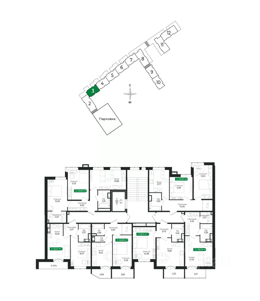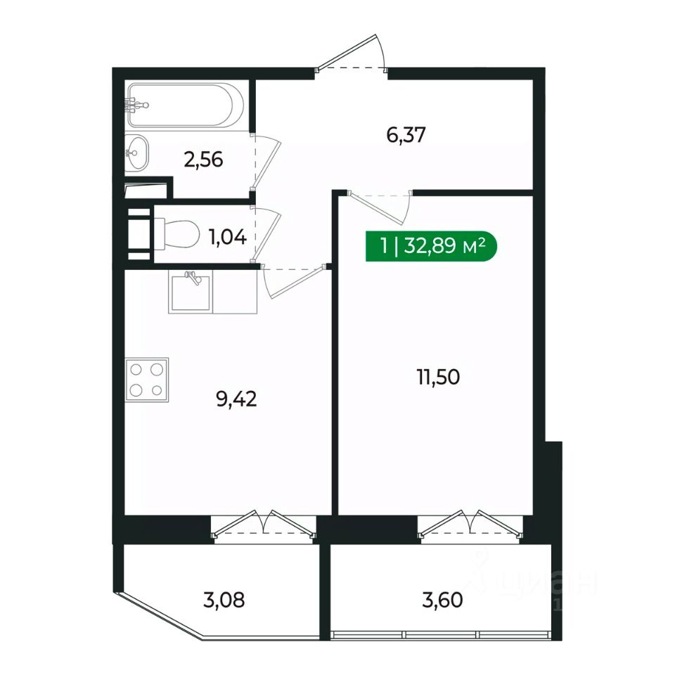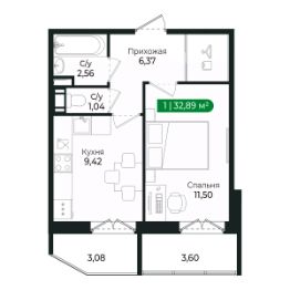 Напрямую продаётся уютная 1-комнатная квартира 41 общей площадью 32,89 м2 во II очереди в жилом комплексе Сертолово Парк от застройщика ГК Алгоритм.
