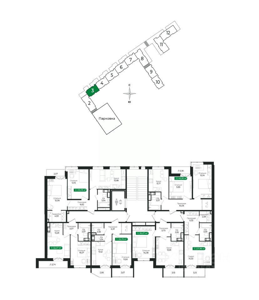 Напрямую продаётся уютная 1-комнатная квартира 54 общей площадью 32,07 м2 во II очереди в жилом комплексе Сертолово Парк от застройщика ГК Алгоритм.