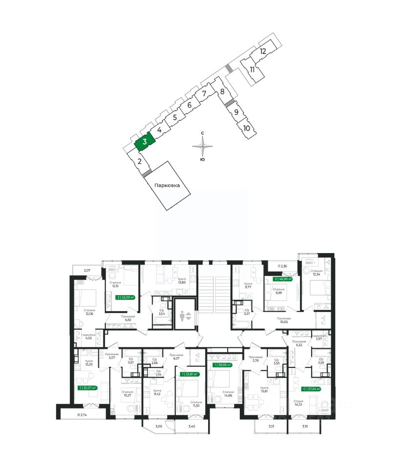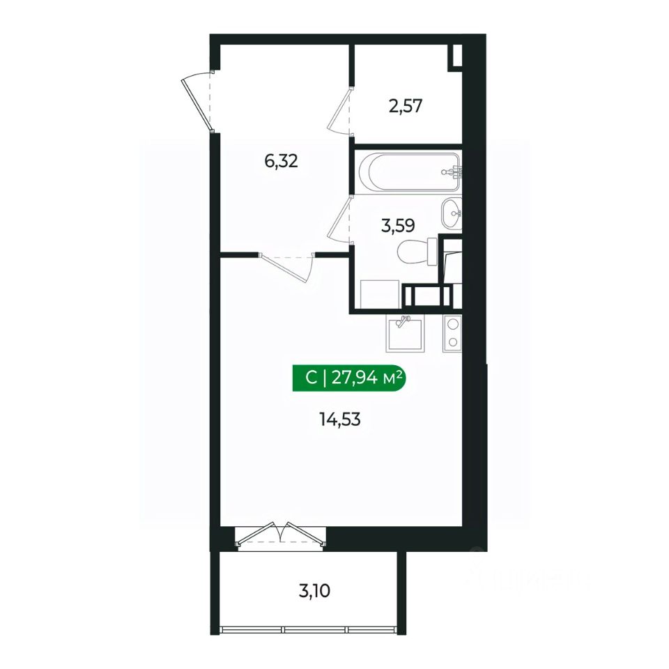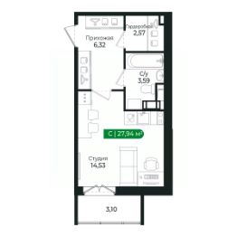 Напрямую продаётся уютная студия 57 общей площадью 27,94 м2 во II очереди в жилом комплексе Сертолово Парк от застройщика ГК Алгоритм.