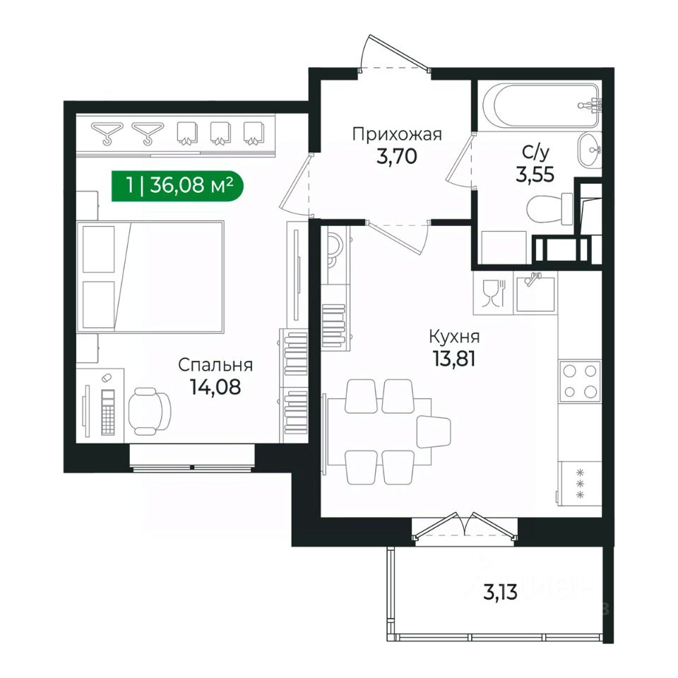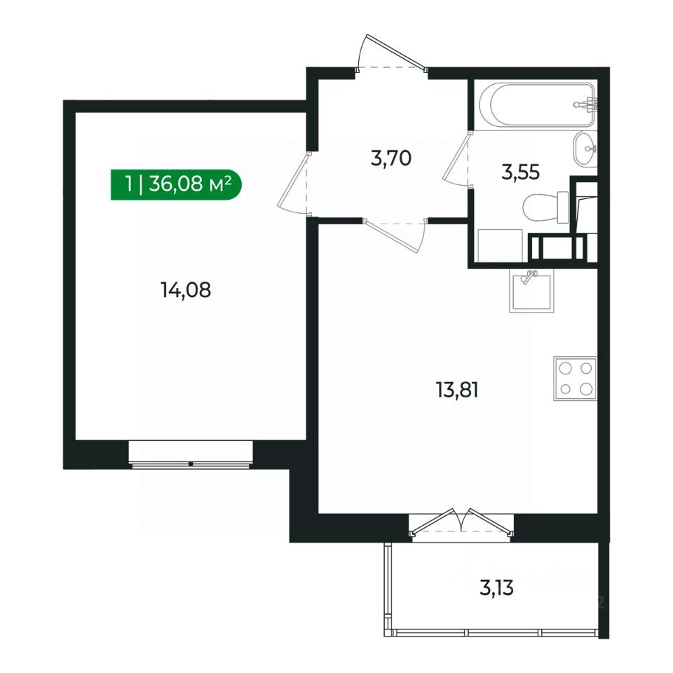 Напрямую продаётся уютная 1-комнатная квартира 58 общей площадью 36,08 м2 во II очереди в жилом комплексе Сертолово Парк от застройщика ГК Алгоритм.