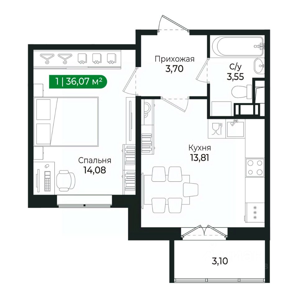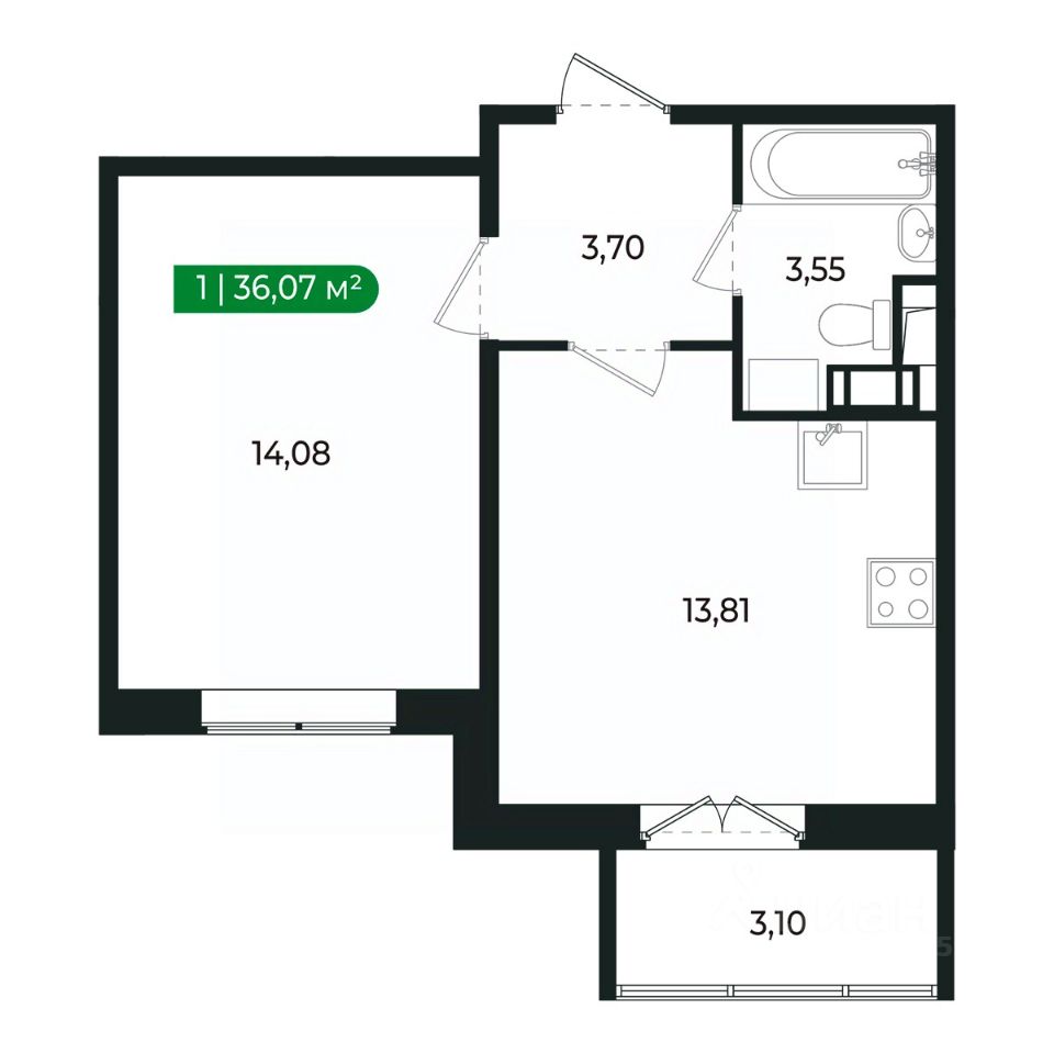 Напрямую продаётся уютная 1-комнатная квартира 64 общей площадью 36,07 м2 во II очереди в жилом комплексе Сертолово Парк от застройщика ГК Алгоритм.