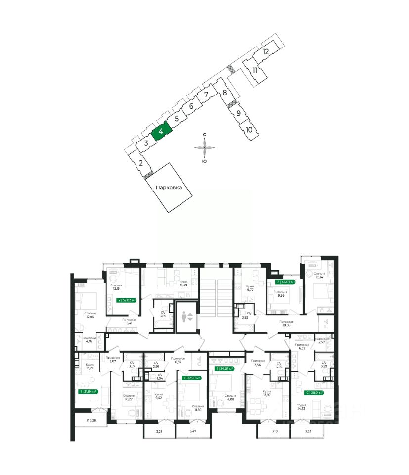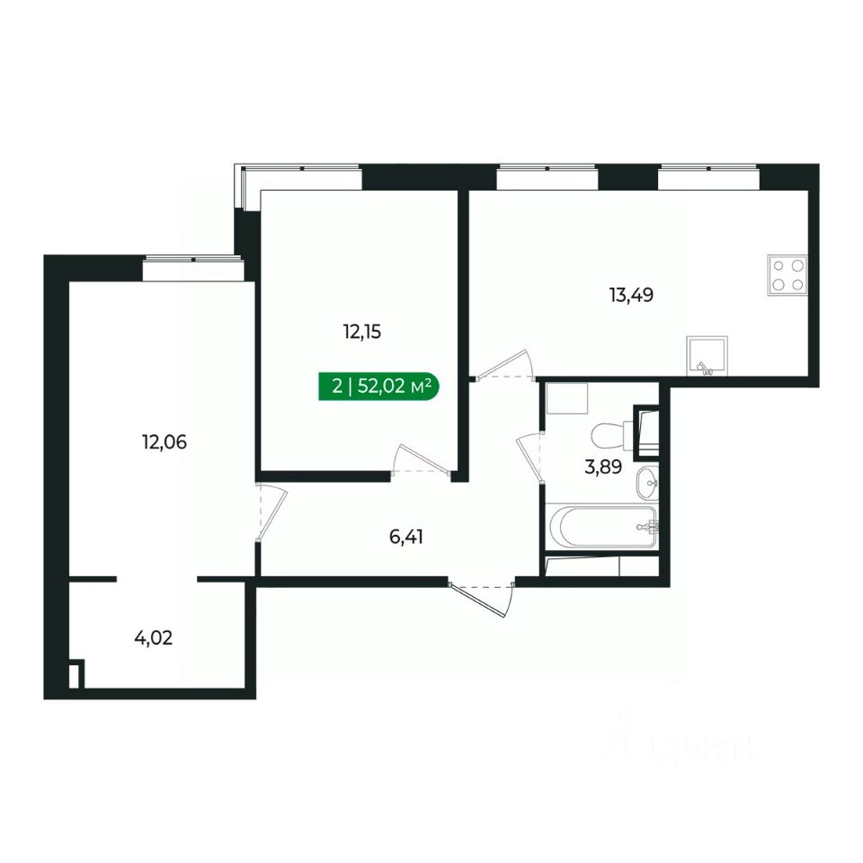Напрямую продаётся уютная 2-комнатная квартира 76 общей площадью 52,02 м2 во II очереди в жилом комплексе Сертолово Парк от застройщика ГК Алгоритм.