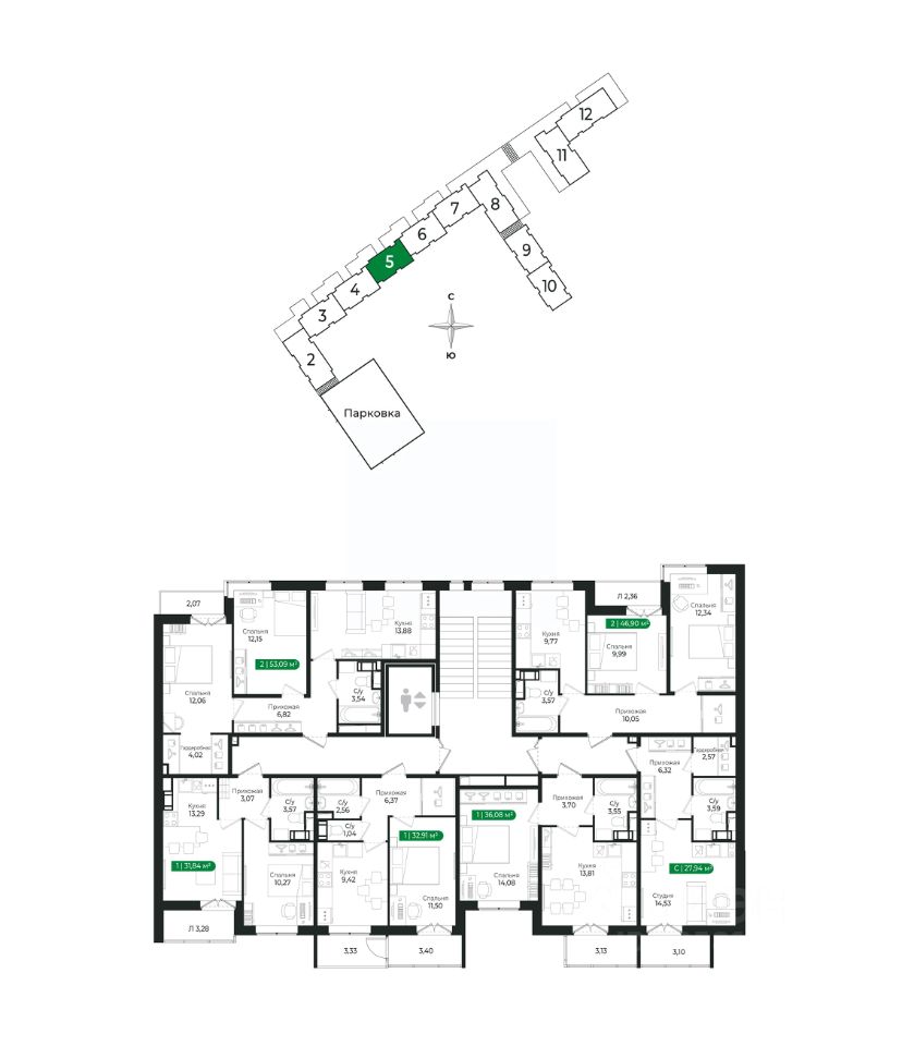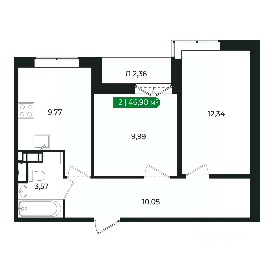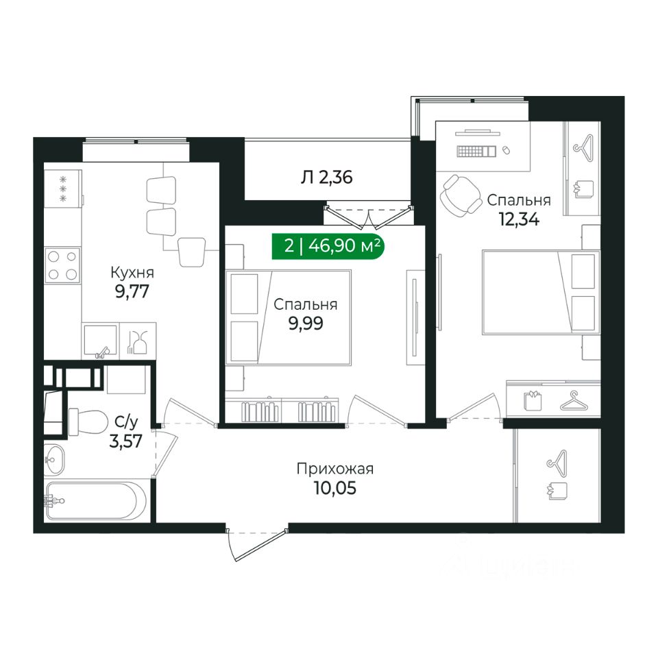 Напрямую продаётся уютная 2-комнатная квартира 122 общей площадью 46,9 м2 во II очереди в жилом комплексе Сертолово Парк от застройщика ГК Алгоритм.