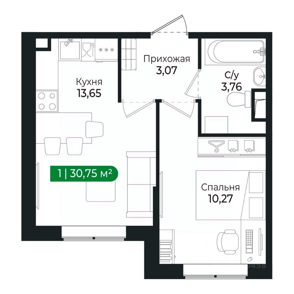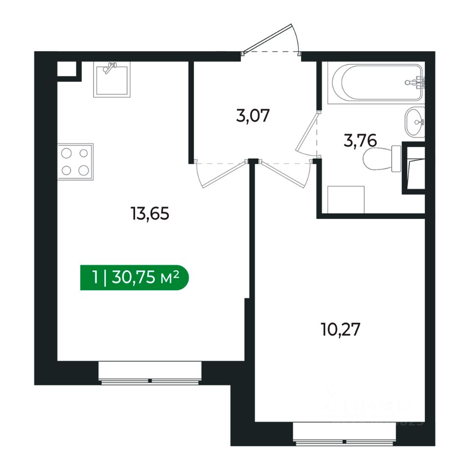 Напрямую продаётся уютная 1-комнатная квартира 136 общей площадью 30,75 м2 во II очереди в жилом комплексе Сертолово Парк от застройщика ГК Алгоритм.