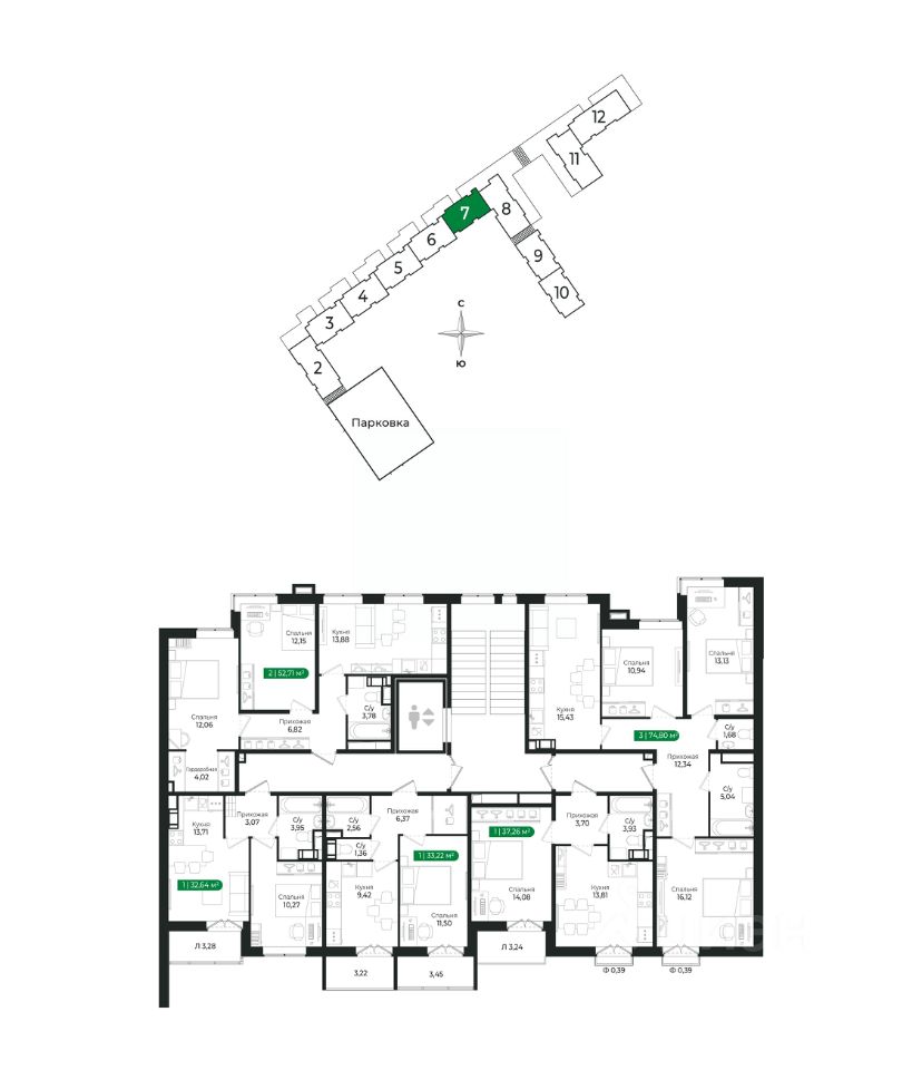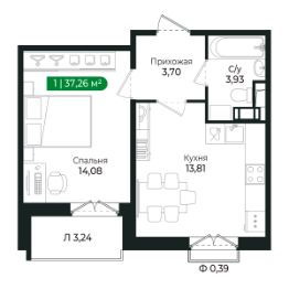 Напрямую продаётся уютная 1-комнатная квартира 183 общей площадью 37,26 м2 во II очереди в жилом комплексе Сертолово Парк от застройщика ГК Алгоритм.