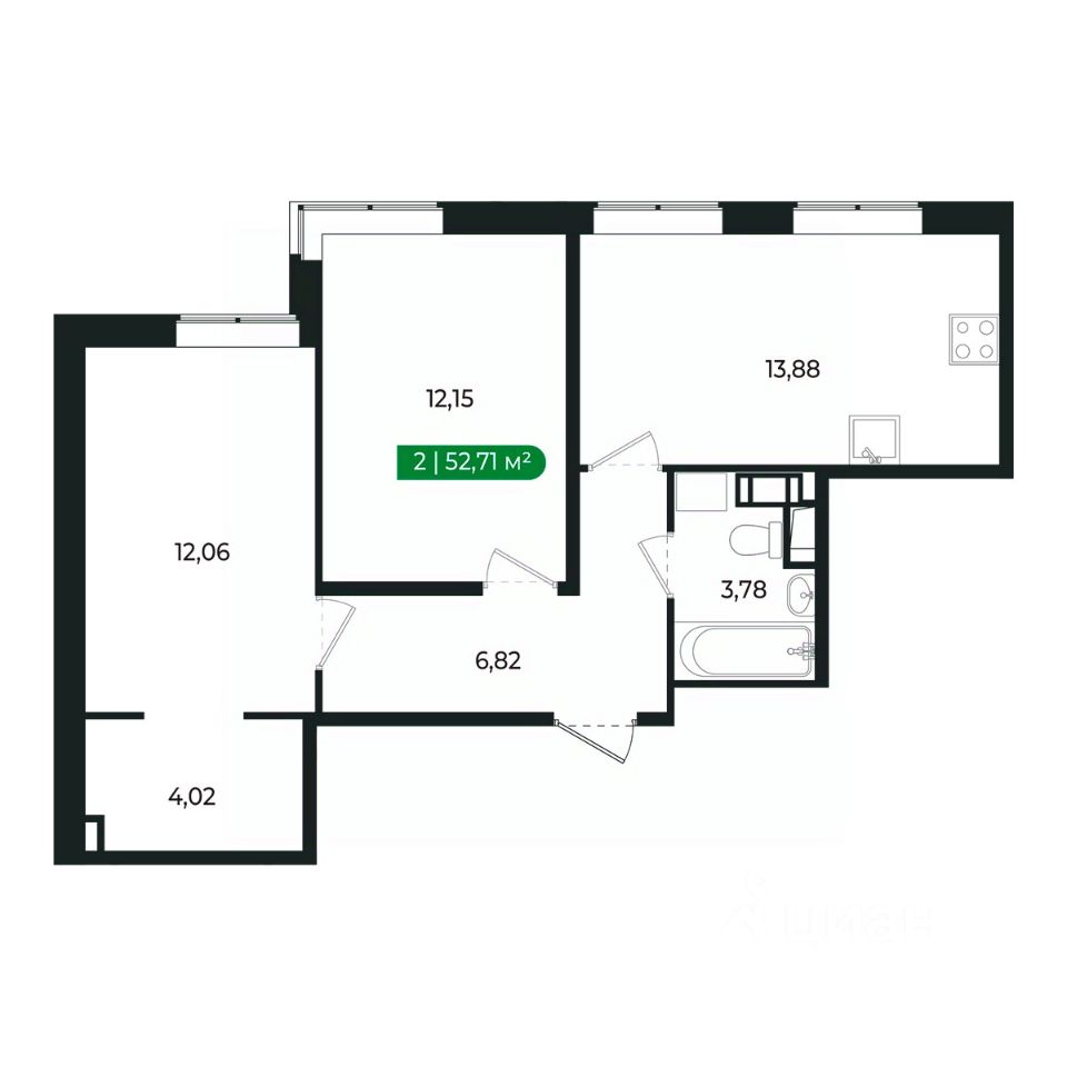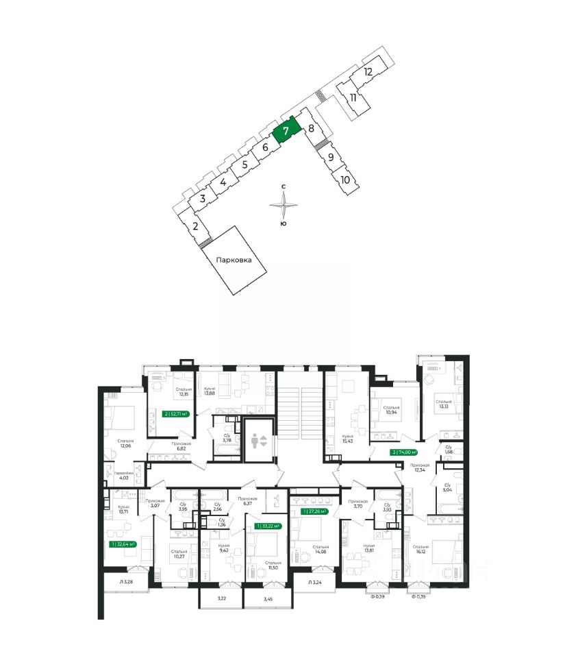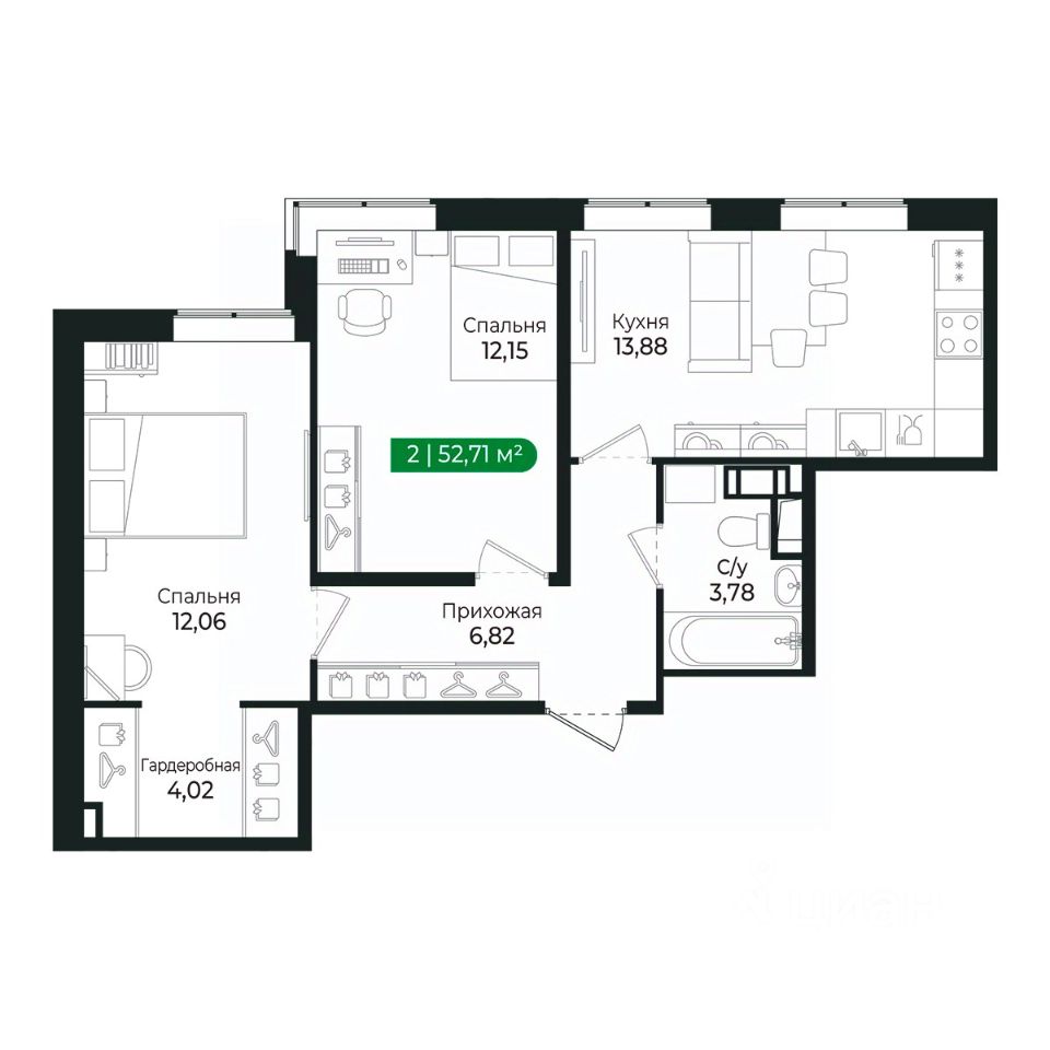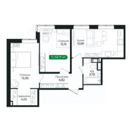 Напрямую продаётся уютная 2-комнатная квартира 186 общей площадью 52,71 м2 во II очереди в жилом комплексе Сертолово Парк от застройщика ГК Алгоритм.