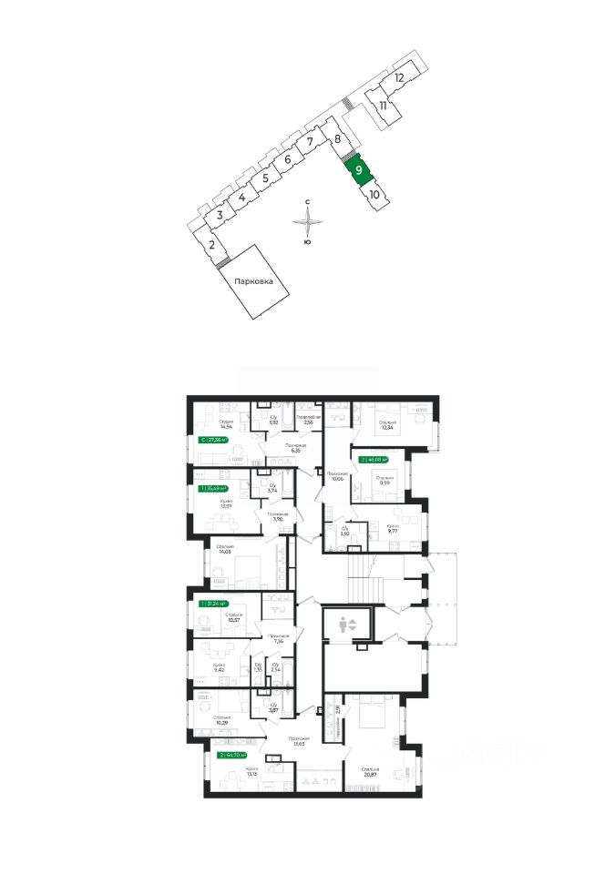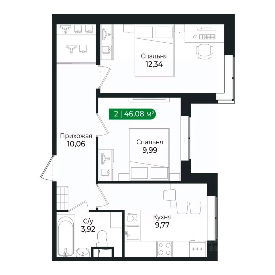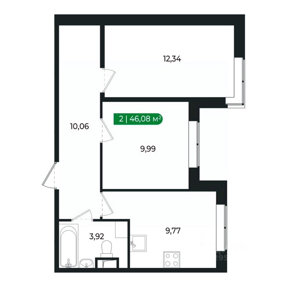 Напрямую продаётся уютная 2-комнатная квартира 270 общей площадью 46,08 м2 во II очереди в жилом комплексе Сертолово Парк от застройщика ГК Алгоритм.