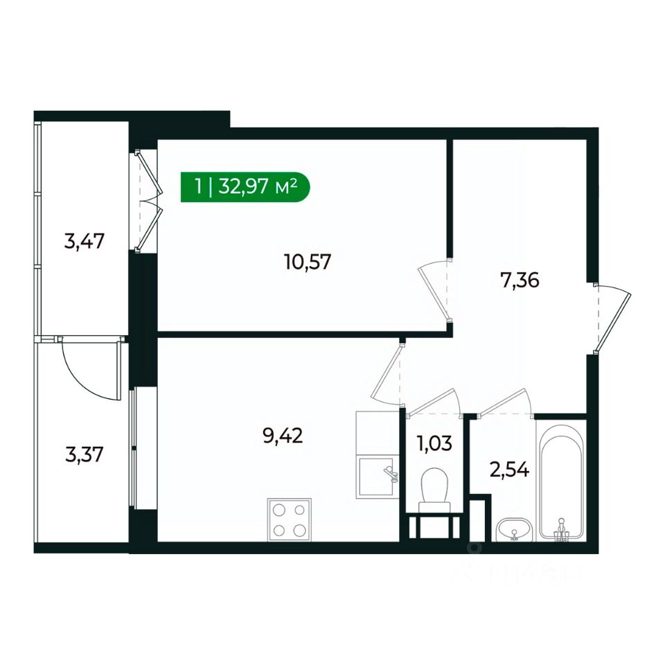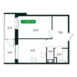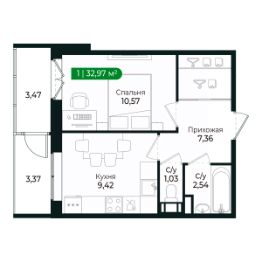 Напрямую продаётся уютная 1-комнатная квартира 279 общей площадью 32,97 м2 во II очереди в жилом комплексе Сертолово Парк от застройщика ГК Алгоритм.