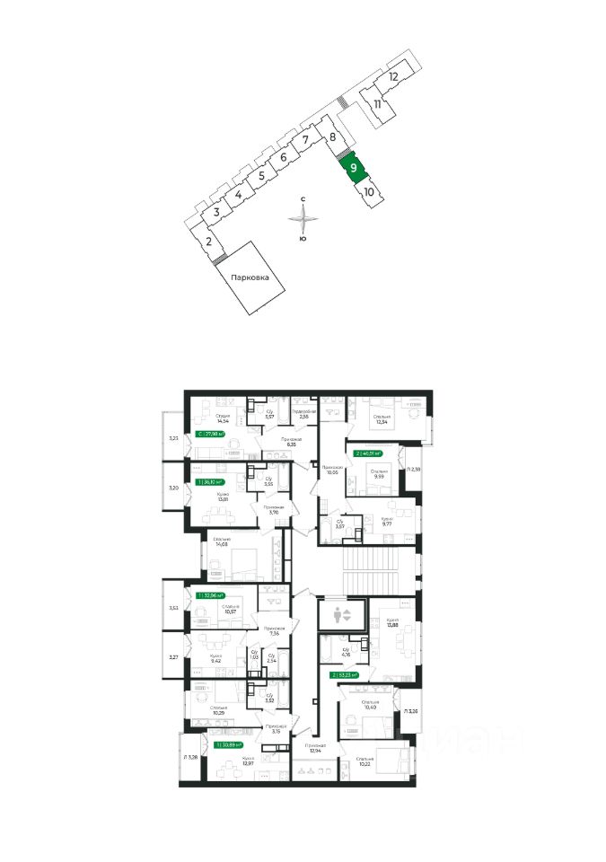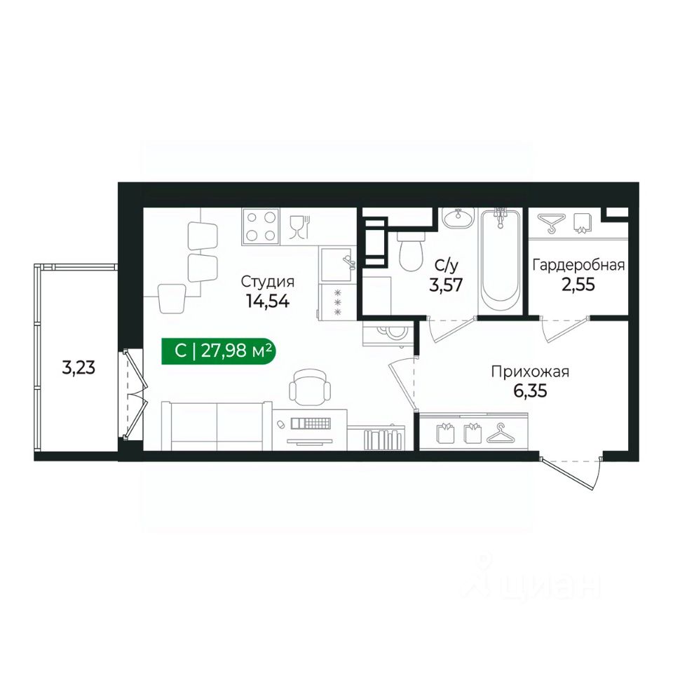 Напрямую продаётся уютная студия 299 общей площадью 27,98 м2 во II очереди в жилом комплексе Сертолово Парк от застройщика ГК Алгоритм.