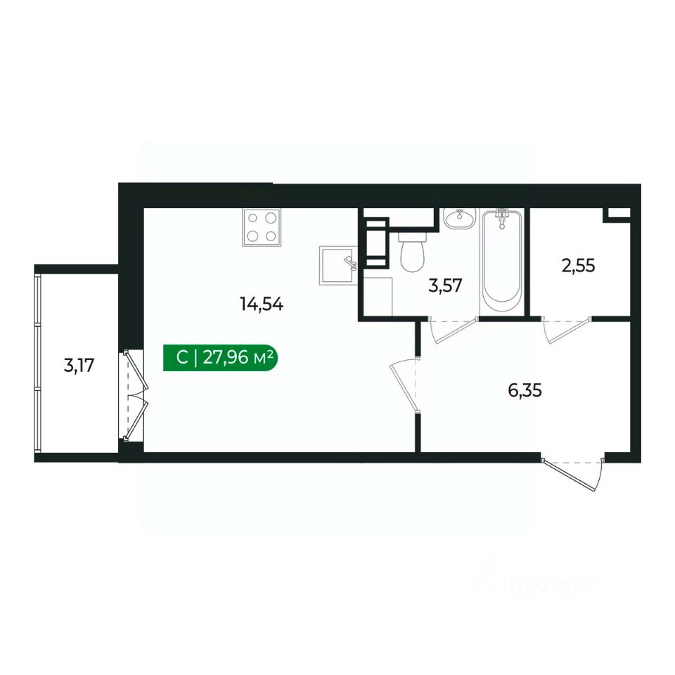 Напрямую продаётся уютная студия 316 общей площадью 27,96 м2 во II очереди в жилом комплексе Сертолово Парк от застройщика ГК Алгоритм.