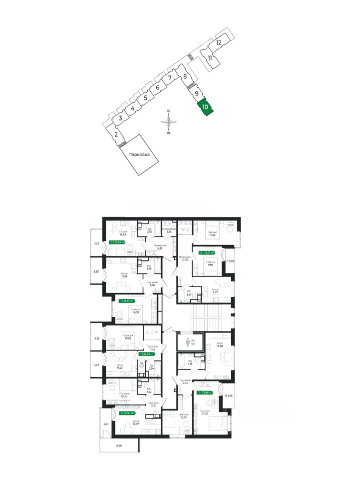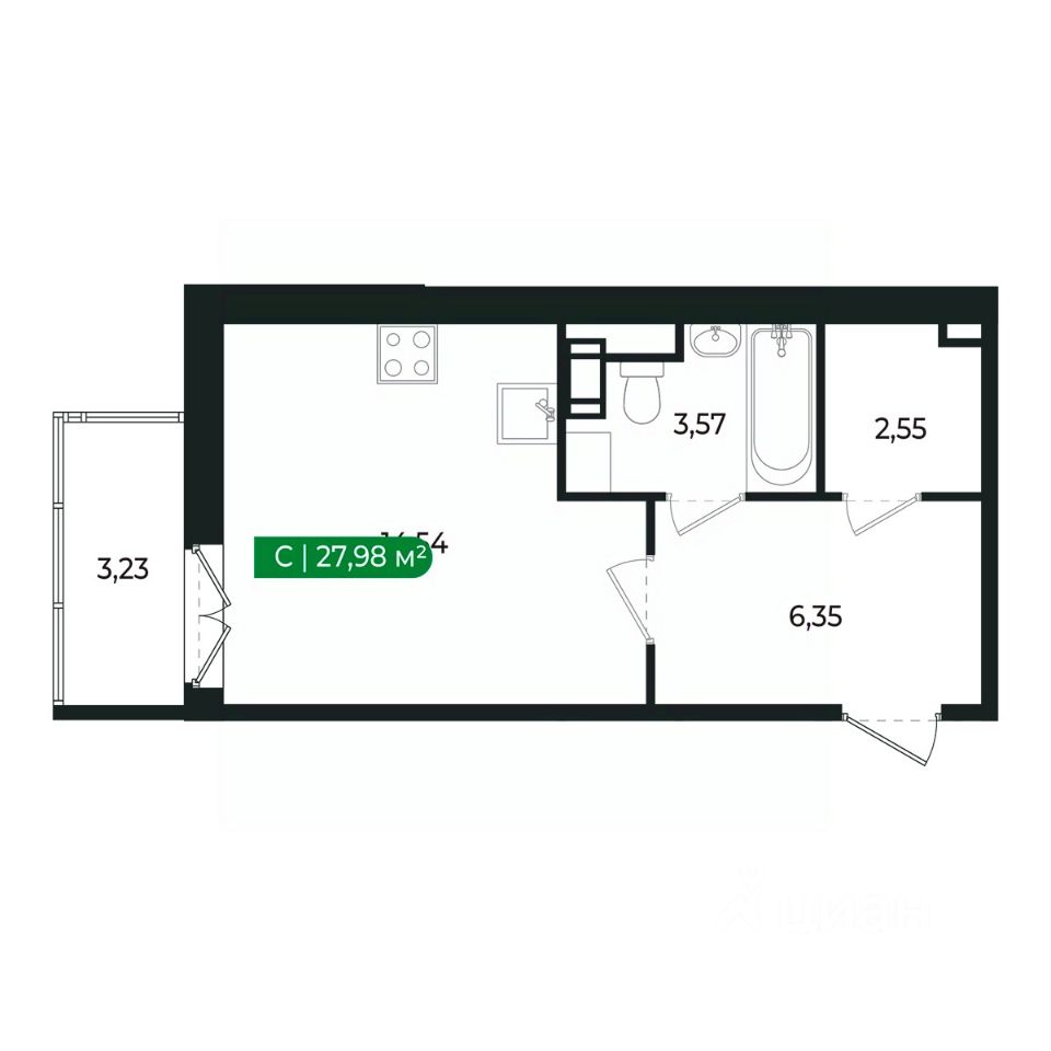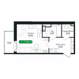 Напрямую продаётся уютная студия 322 общей площадью 27,98 м2 во II очереди в жилом комплексе Сертолово Парк от застройщика ГК Алгоритм.