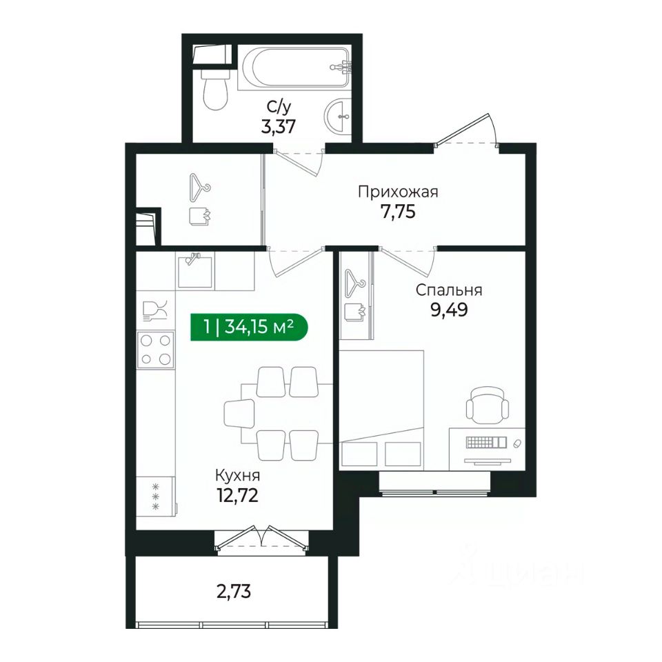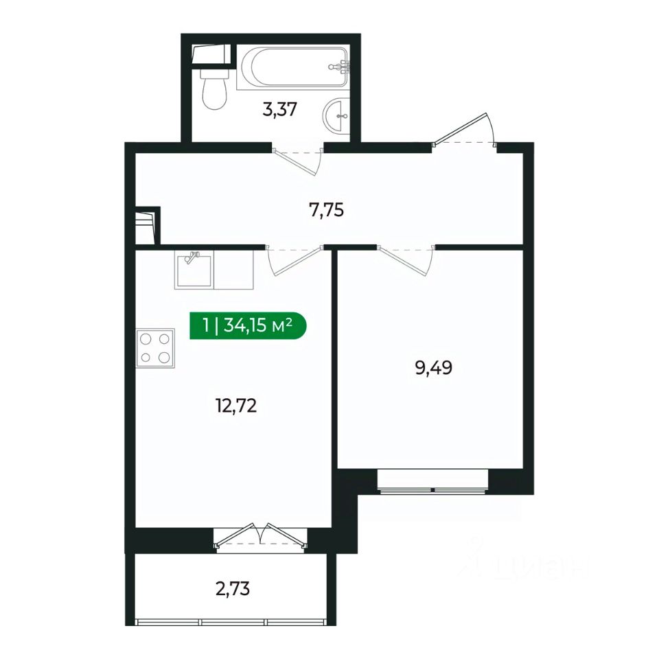 Напрямую продаётся уютная 1-комнатная квартира 389 общей площадью 34,15 м2 во II очереди в жилом комплексе Сертолово Парк от застройщика ГК Алгоритм.