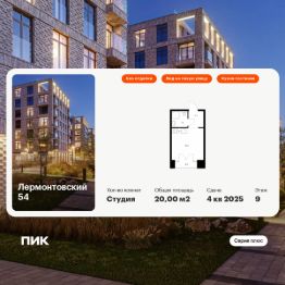 Продаётся квартира-студия площадью 20 кв.м на 9 этаже 9 этажного дома (Корпус 2.2, Секция 13) проекта ПИК Лермонтовский 54. Светлый просторный подъезд на уровне земли, функциональная планировка, большие окна, без отделки.