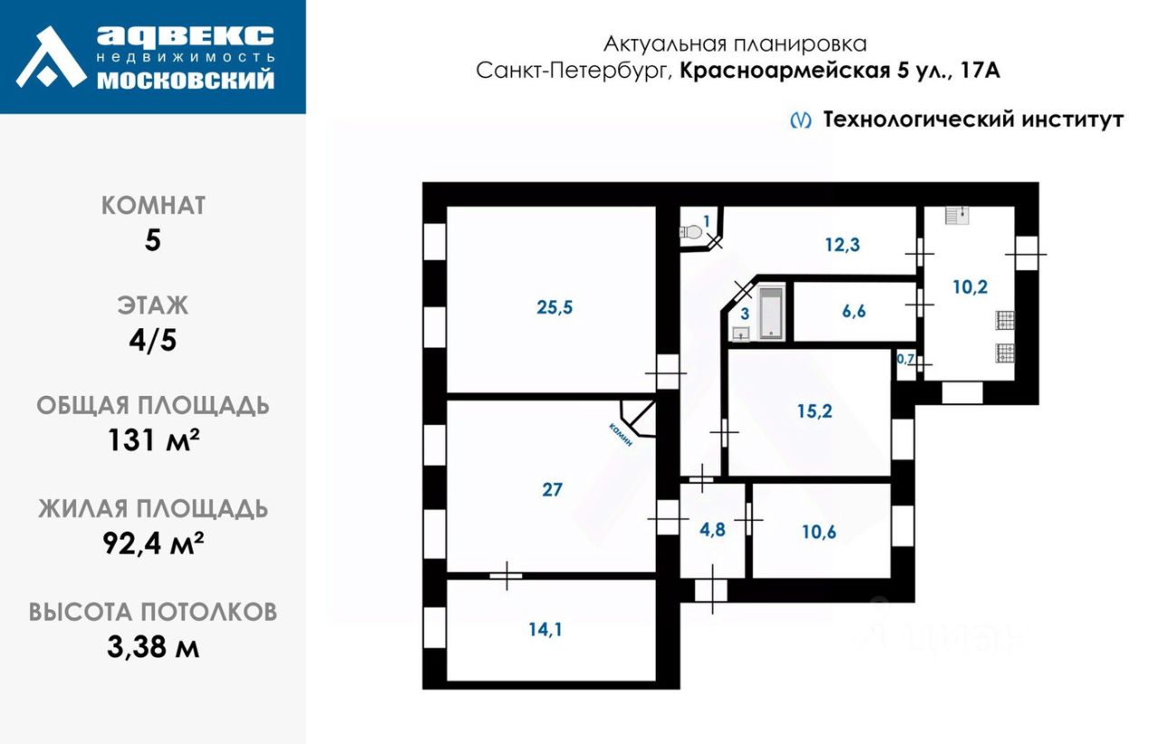 К продаже предлагается старинная 5-х комнатная квартира в историческом центре города, между ст.м. "Технологический институт" и "Фрунзенская".