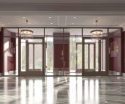 Вход с закрытого благоустроенного двора. На первом этаже располагаются лобби и зона ресепшен.
