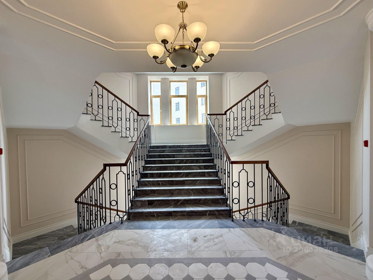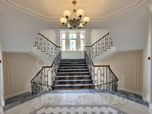 Интерьер лобби выполнен в неоклассическом стиле. Полы покрыты керамогранитом, стены облицованы штукатуркой и зеркалами. Красивая парадная лестница с деревянными перилами.