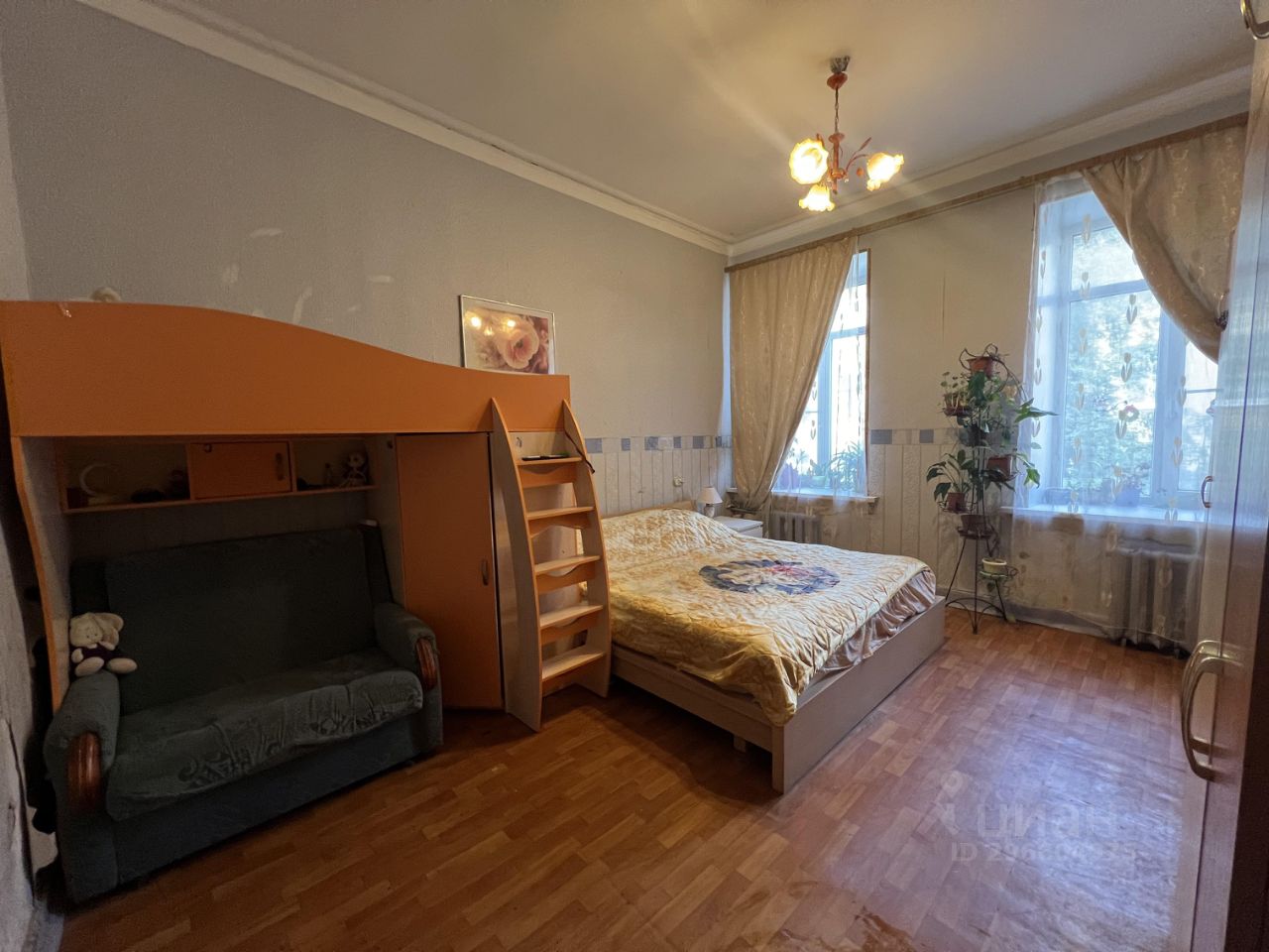 Kвapтирa c тремя изолиpовaнными комнaтами (18.2.4 кв.м, и 11.4 кв.м., 65.1 кв.м); пять окон квартиры выходят в закрытый зеленый двор, где не слышно шума улиц.Высота потолков составляет 3,25 метра!