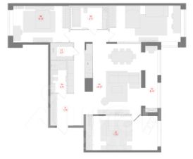Три комнаты, в том числе кухня-гостиная выходят на восточную сторону света (придомовая благоустроенная зелёная территория), что обеспечивает отличную инсоляцию. В одной из спален организовано эффектное эркерное остекление.