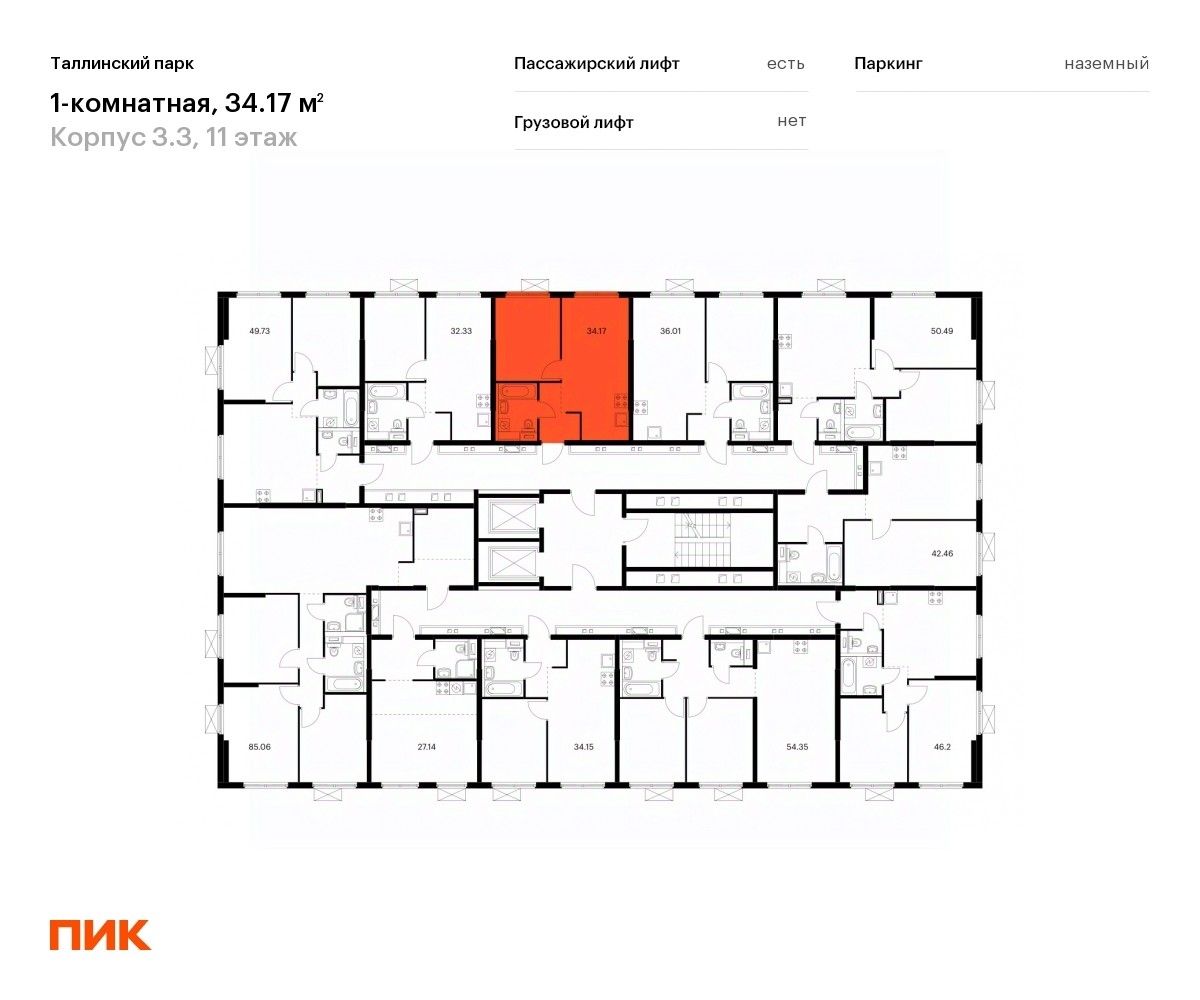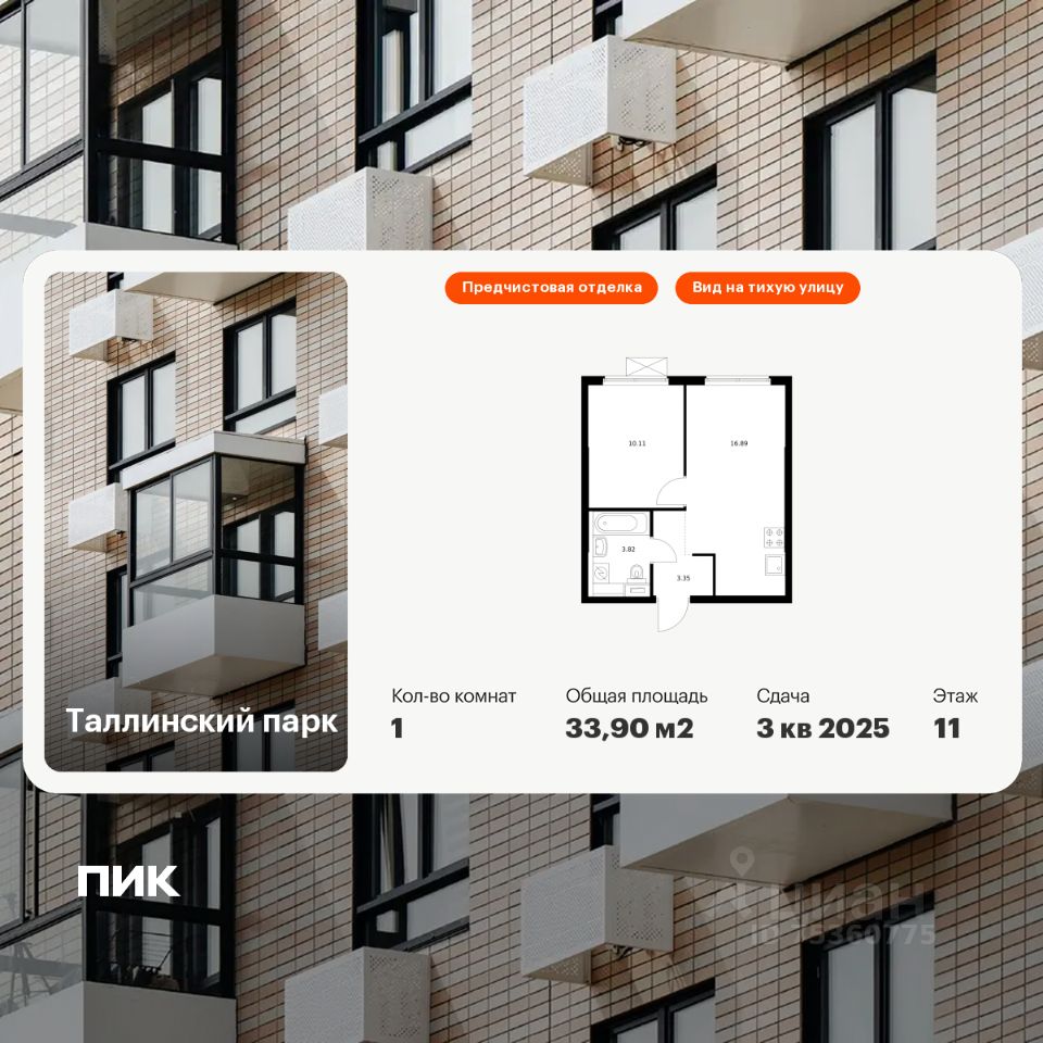 Продаётся 1-комн. квартира площадью 33,9 кв.м на 11 этаже 12 этажного дома (Корпус 3.3, Секция 1) проекта ПИК Таллинский парк. Светлый просторный подъезд на уровне земли, функциональная планировка, большие окна, предчистовая отделка.
