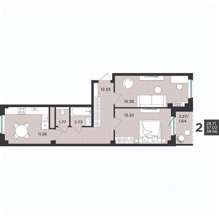 Общая площадь58,66 м²