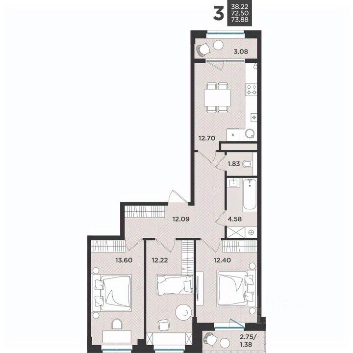 Общая площадь73,88 м²