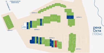 В пешей доступности находится станция метро Девяткино. Оазис зелени вокруг и на территории поселка создают благоприятную атмосферу для жизни. Близость благоустроенной набережной р. Охта придает дополнительный комфорт и позволяет наслаждаться вечерними прогулками.