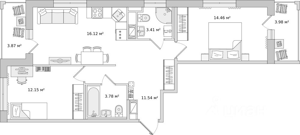 Отделка Lifestyle: на полу ламинат, на стенах обои под покраску, установлены межкомнатные двери, в санузлах везде положена плитка, установлена вся сантехника!