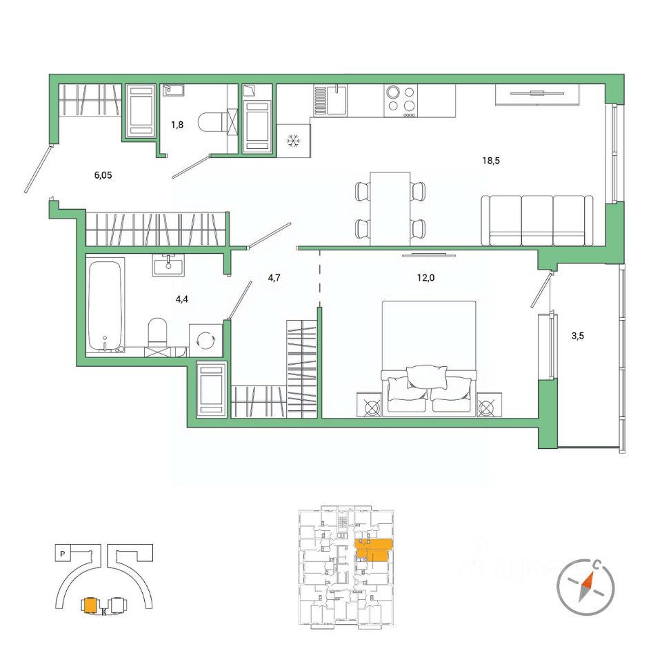 Площадь кухни18,5 м²