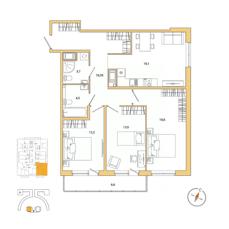 Площадь кухни19,1 м²