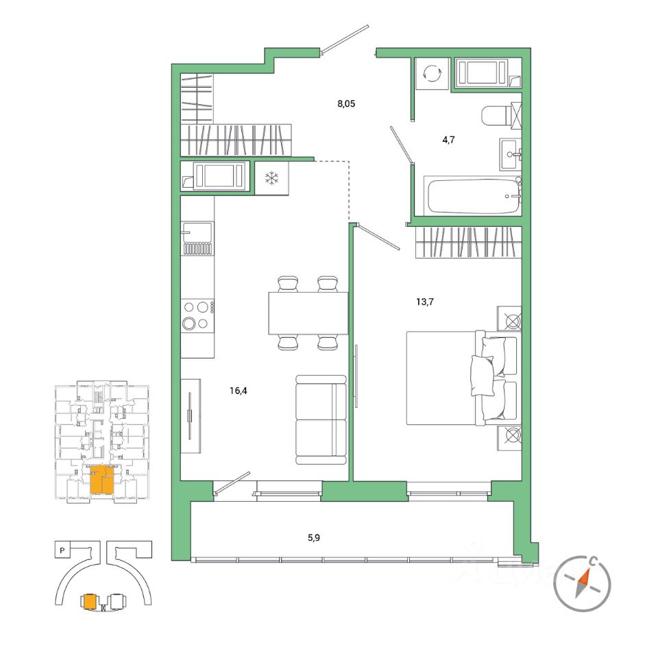 Жилая площадь13,7 м²