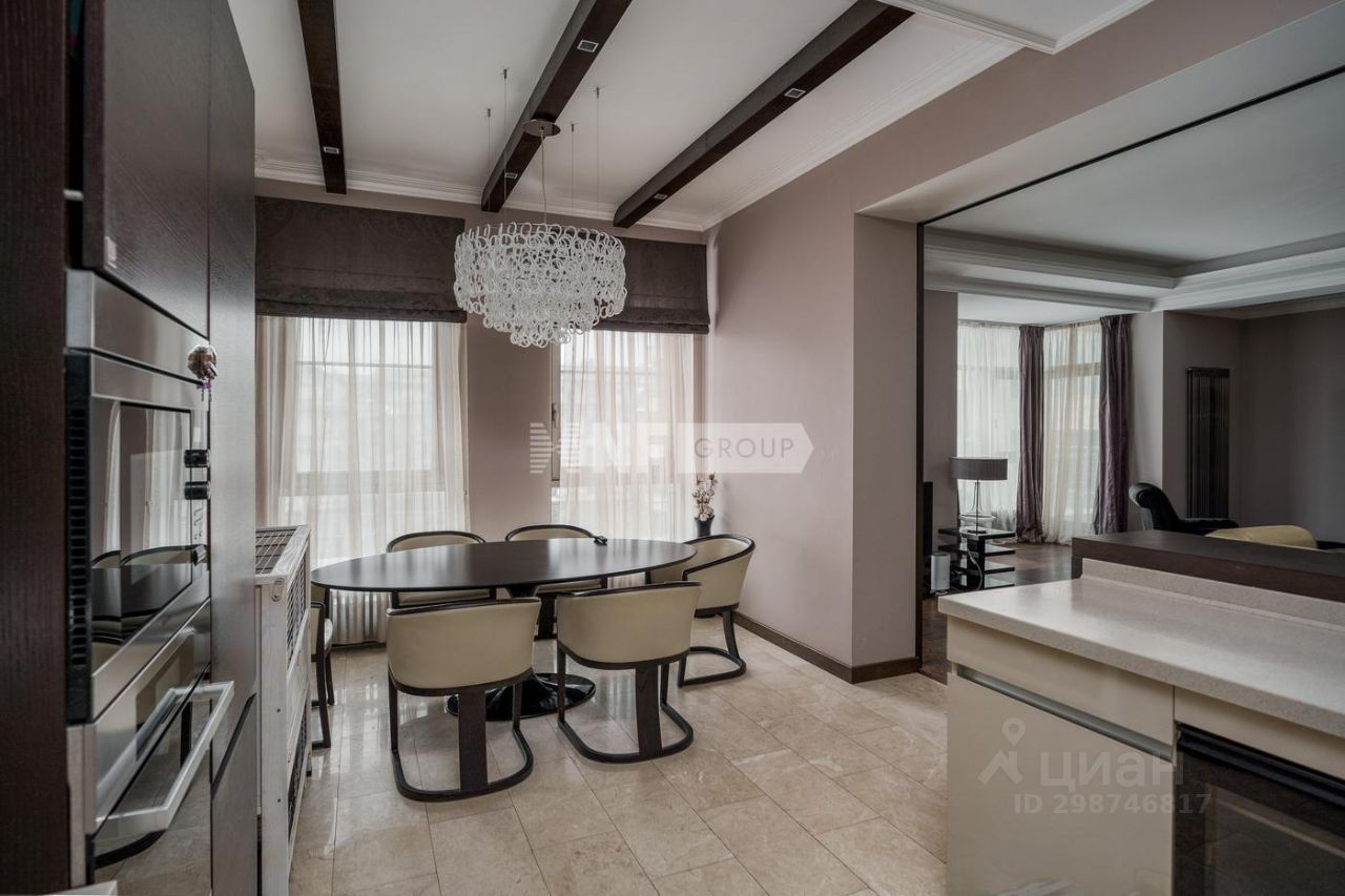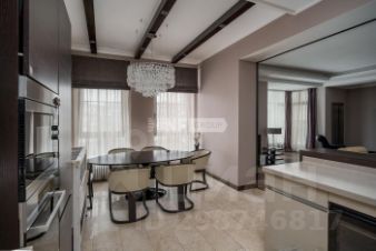 Немецкая кухня Leicht оснащена техникой Miele. В отделке квартиры использованы предметы ведущих мировых брендов: Minotti, Porada, Poltrona Frau, Longhi и многие другие. Пол в квартире выстелен массивной доской кокоса. Функциональная планировка включает в себя также просторную спальню с гардеробной, детскую комнату и кабинет.