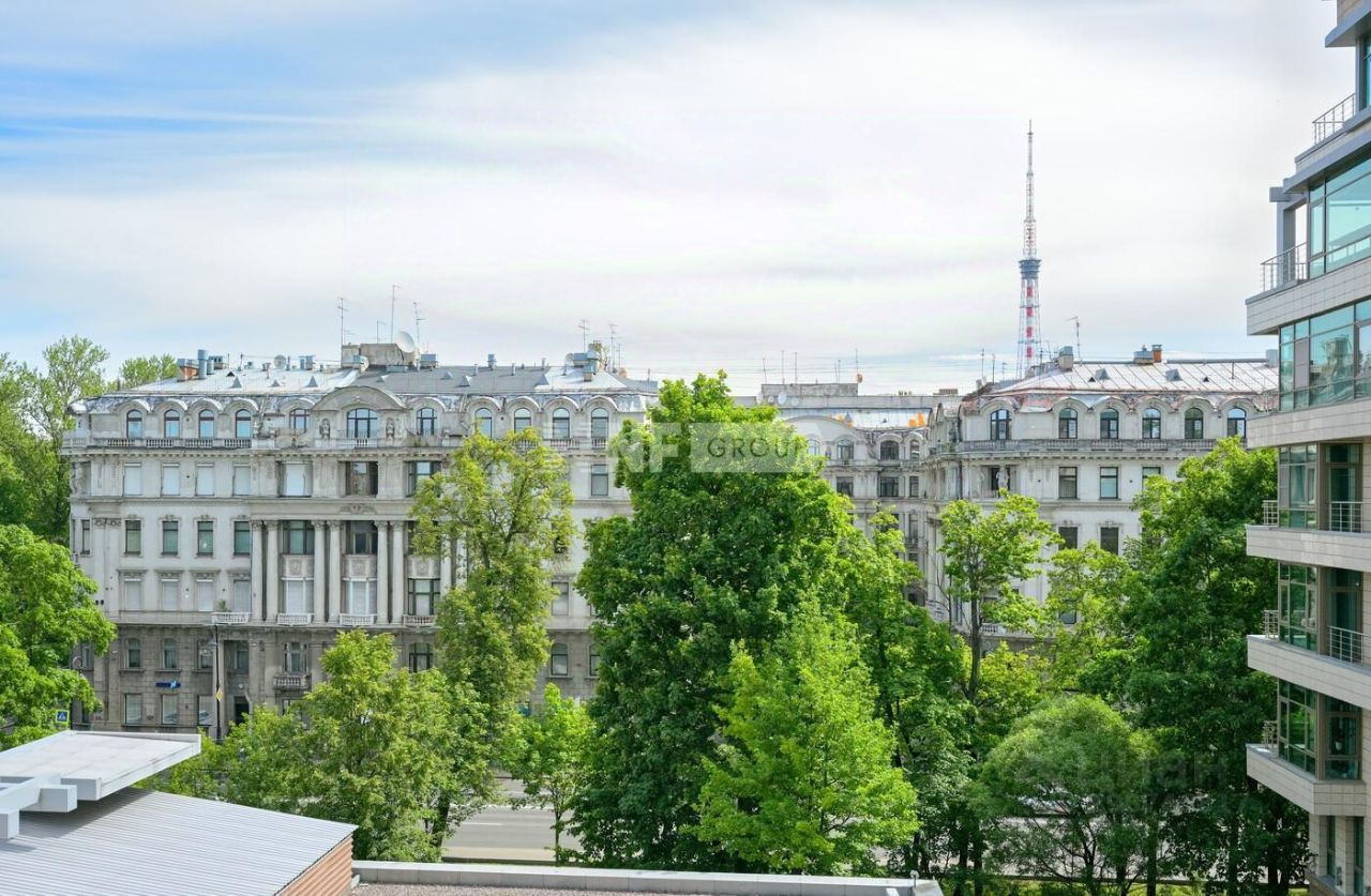 Из панорамных окон гостиной и кухни открывается потрясающий вид на Каменноостровский проспект.