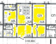 Комнаты изолированные 14 и 16 метров. Кухня 9 метров с выходом на застекленную лоджию.