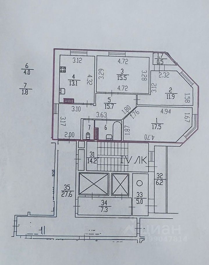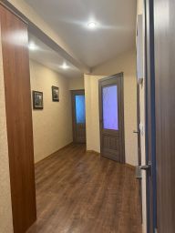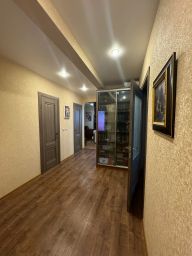 Комнаты изолированные 17,4 м, 15,4 м, 11,9 м, просторная кухня 13,1 м, раздельный санузел. Так как в квартире окна на три стороны и в коридоре есть окно, квартира очень светлая и в ней всегда есть солнце. В одной из комнат небольшая застекленная лоджия. В квартире сделан качественный ремонт, новым собственникам останется встроенная мебель. Удачная планировка создает ощущение простора в квартире.