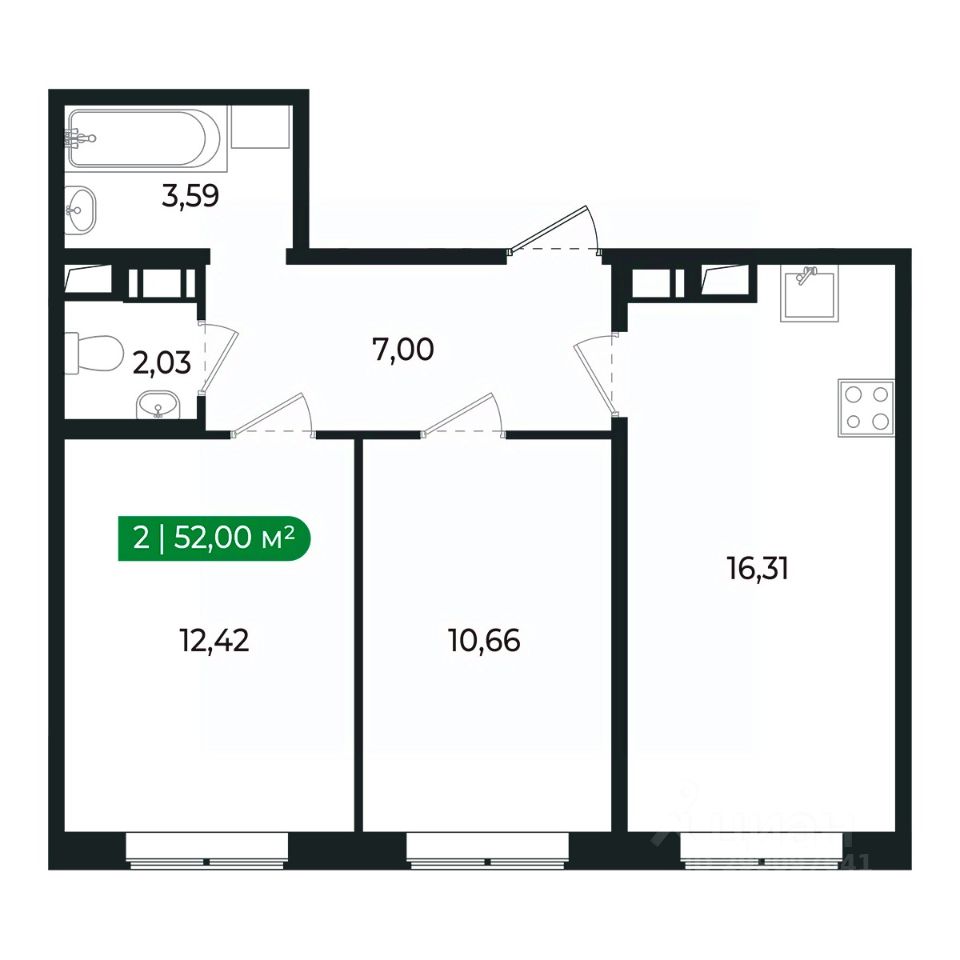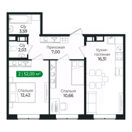 Напрямую продаётся 2 комнатная квартира 17 на 2 этаже (из 8) общей площадью 52 м2 в III очереди в жилом комплексе Сертолово Парк от застройщика ГК Алгоритм.
