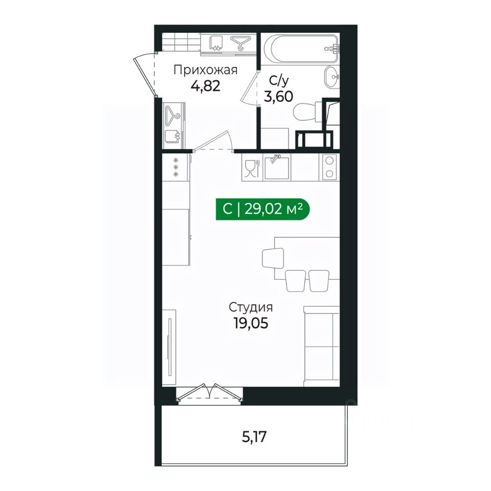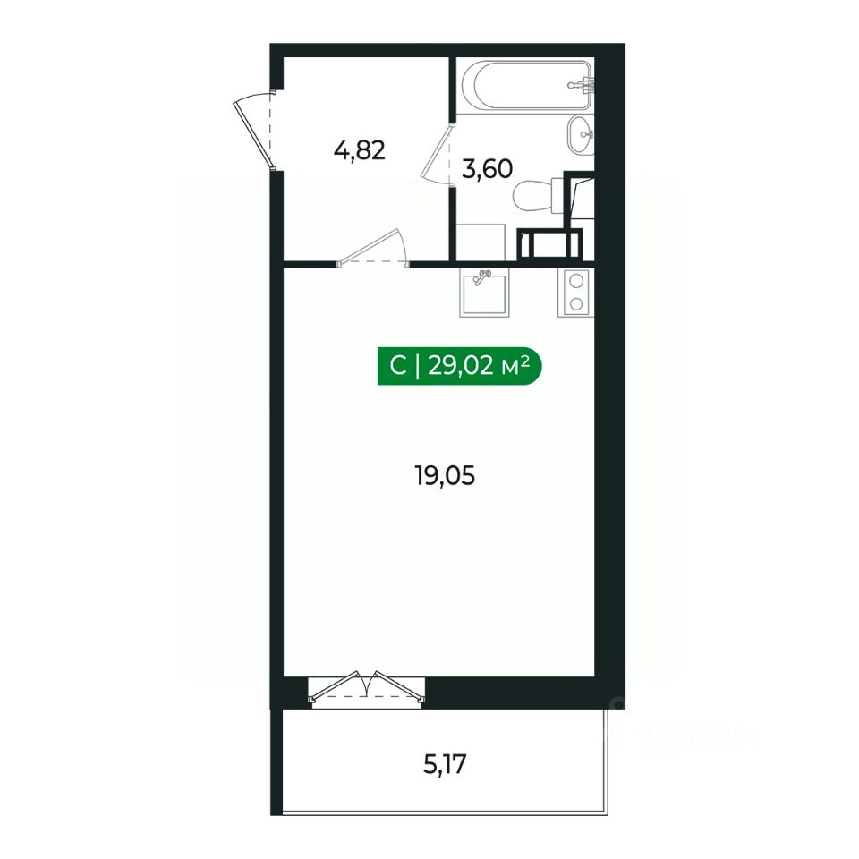 Напрямую продаётся квартира -студия 29 на 4 этаже (из 8) общей площадью 29,02 м2 в III очереди в жилом комплексе Сертолово Парк от застройщика ГК Алгоритм.