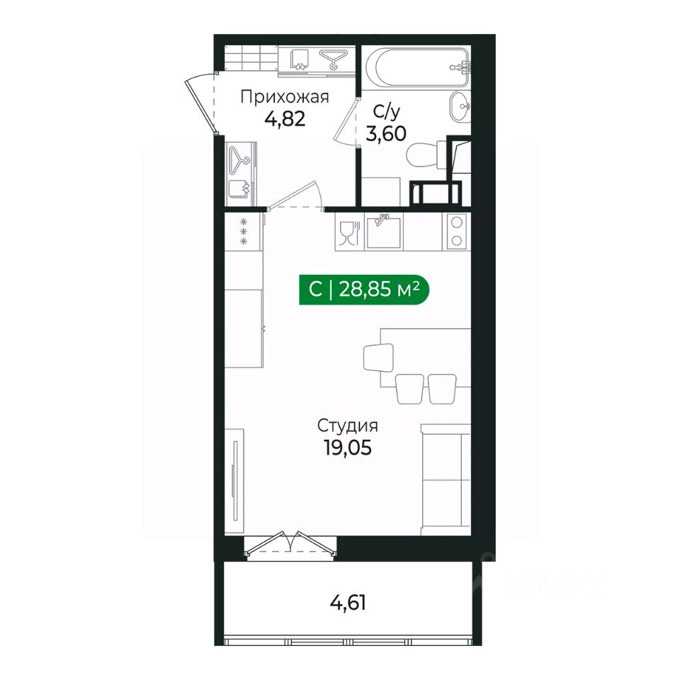 Напрямую продаётся квартира -студия 44 на 7 этаже (из 8) общей площадью 28,85 м2 в III очереди в жилом комплексе Сертолово Парк от застройщика ГК Алгоритм.