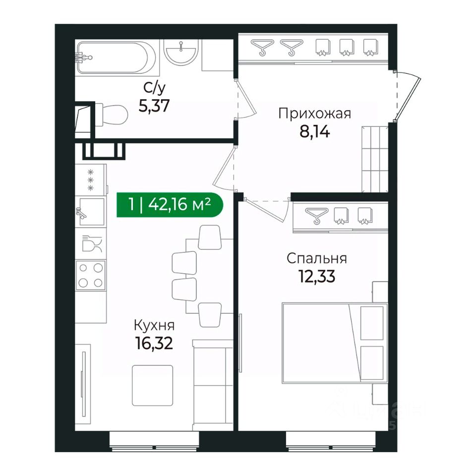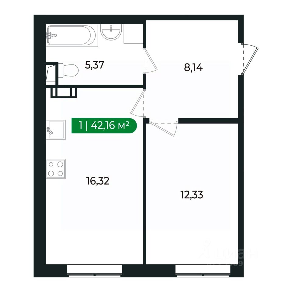 Напрямую продаётся 1 комнатная квартира 52 на 2 этаже (из 4) общей площадью 42,16 м2 в III очереди в жилом комплексе Сертолово Парк от застройщика ГК Алгоритм.