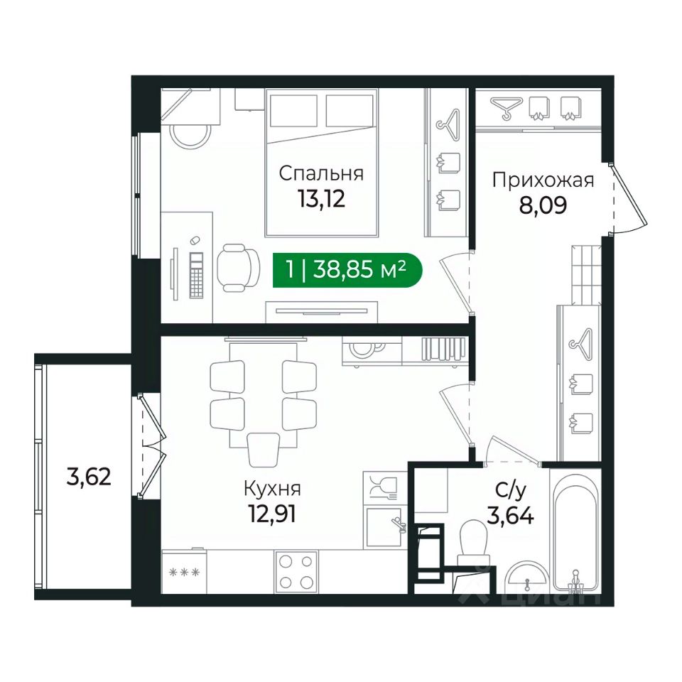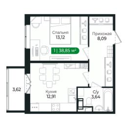 Напрямую продаётся 1 комнатная квартира 74 на 4 этаже (из 4) общей площадью 38,85 м2 в III очереди в жилом комплексе Сертолово Парк от застройщика ГК Алгоритм.