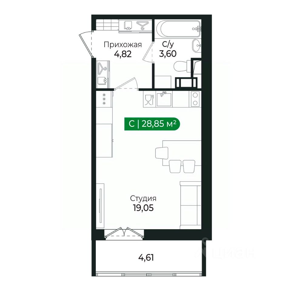 Напрямую продаётся квартира -студия 138 на 3 этаже (из 8) общей площадью 28,85 м2 в III очереди в жилом комплексе Сертолово Парк от застройщика ГК Алгоритм.