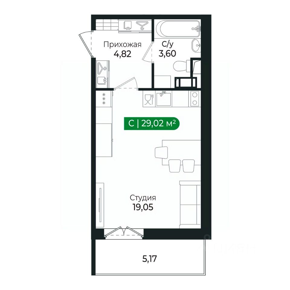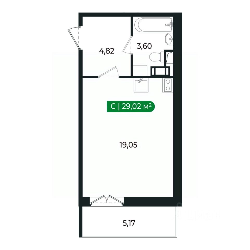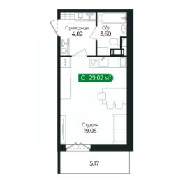 Напрямую продаётся квартира -студия 143 на 4 этаже (из 8) общей площадью 29,02 м2 в III очереди в жилом комплексе Сертолово Парк от застройщика ГК Алгоритм.