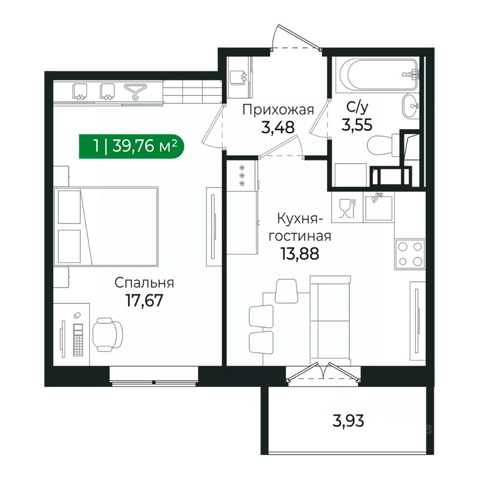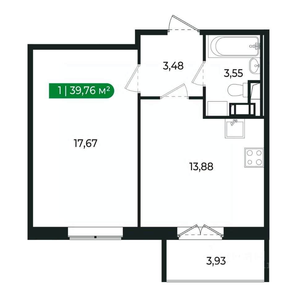 Напрямую продаётся 1 комнатная квартира 157 на 7 этаже (из 8) общей площадью 39,76 м2 в III очереди в жилом комплексе Сертолово Парк от застройщика ГК Алгоритм.