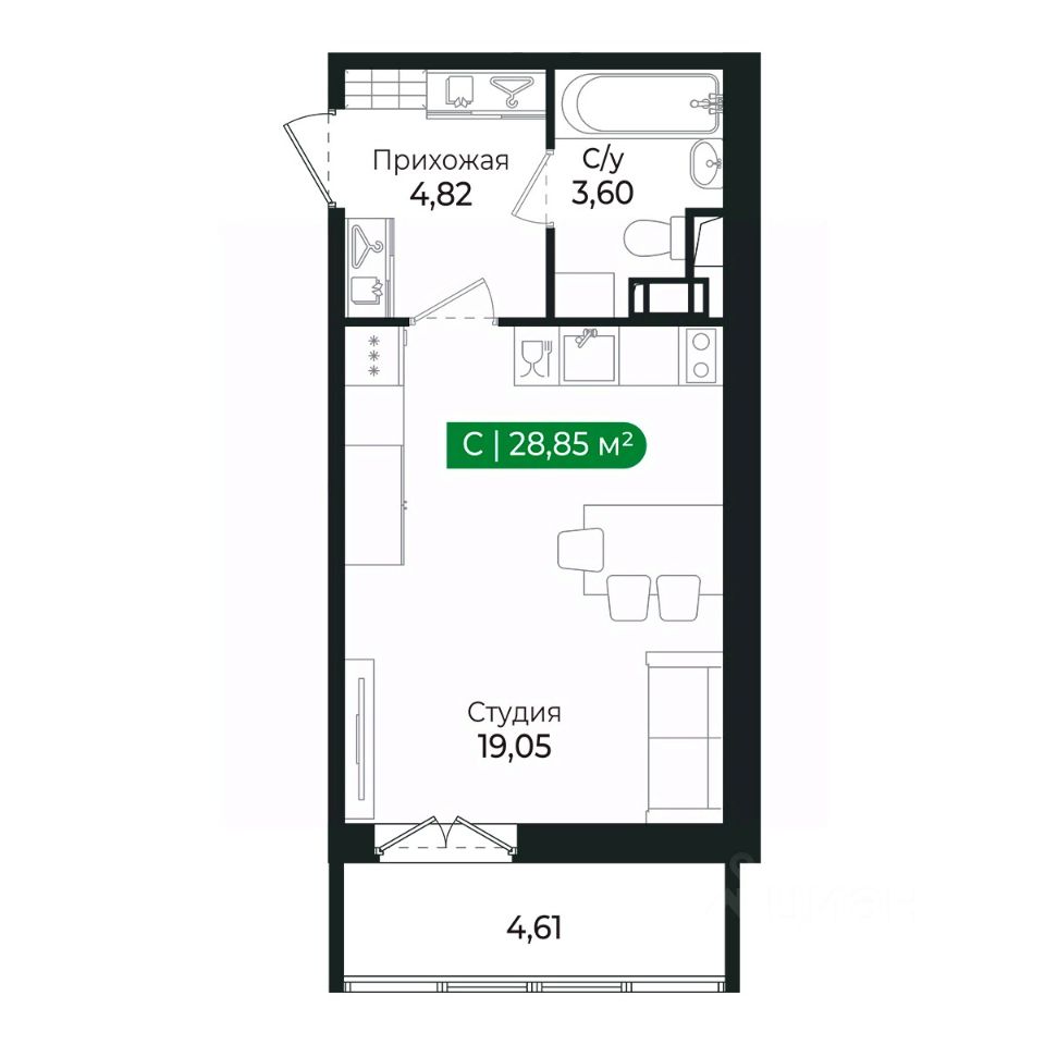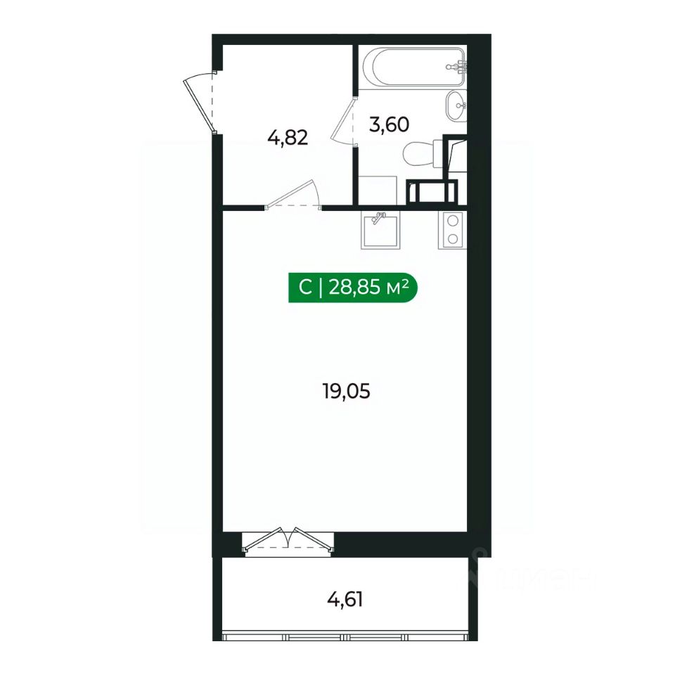 Напрямую продаётся квартира -студия 158 на 7 этаже (из 8) общей площадью 28,85 м2 в III очереди в жилом комплексе Сертолово Парк от застройщика ГК Алгоритм.