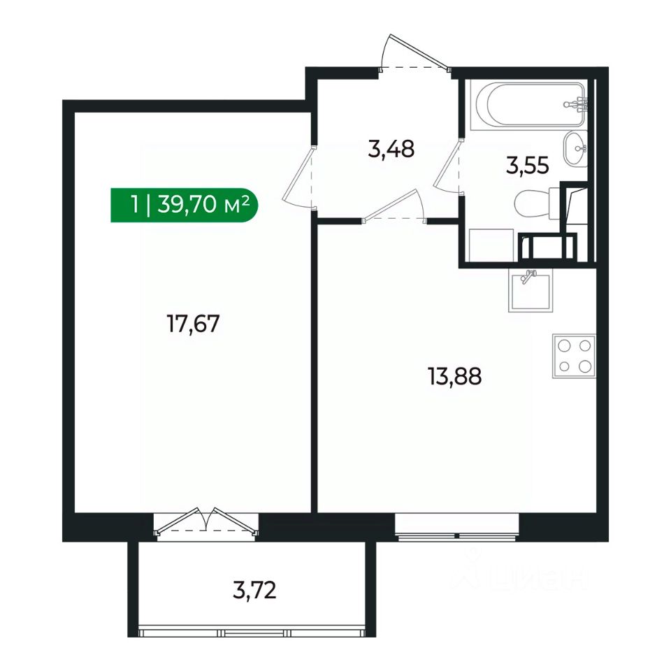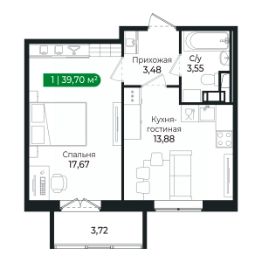 Напрямую продаётся 1 комнатная квартира 162 на 8 этаже (из 8) общей площадью 39,7 м2 в III очереди в жилом комплексе Сертолово Парк от застройщика ГК Алгоритм.