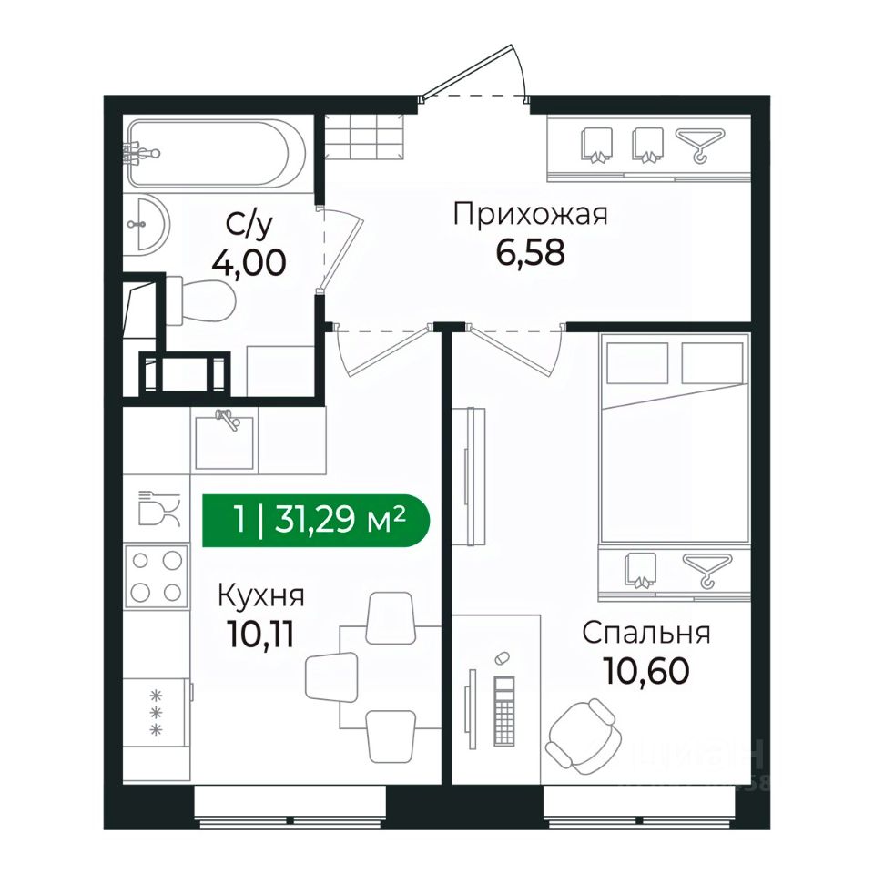 Напрямую продаётся 1 комнатная квартира 167 на 2 этаже (из 8) общей площадью 31,29 м2 в III очереди в жилом комплексе Сертолово Парк от застройщика ГК Алгоритм.