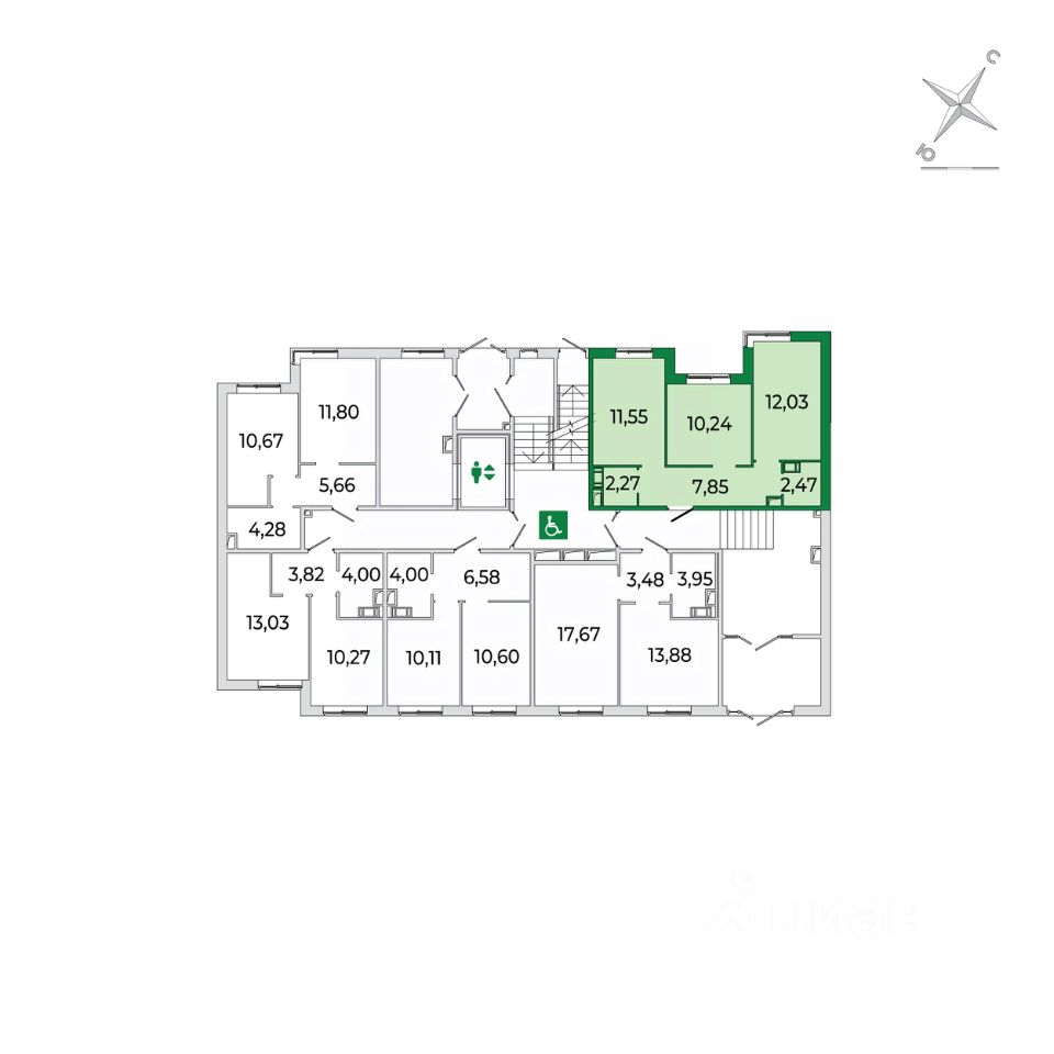 Напрямую продаётся 2 комнатная квартира 211 на 1 этаже (из 8) общей площадью 46,4 м2 в III очереди в жилом комплексе Сертолово Парк от застройщика ГК Алгоритм.