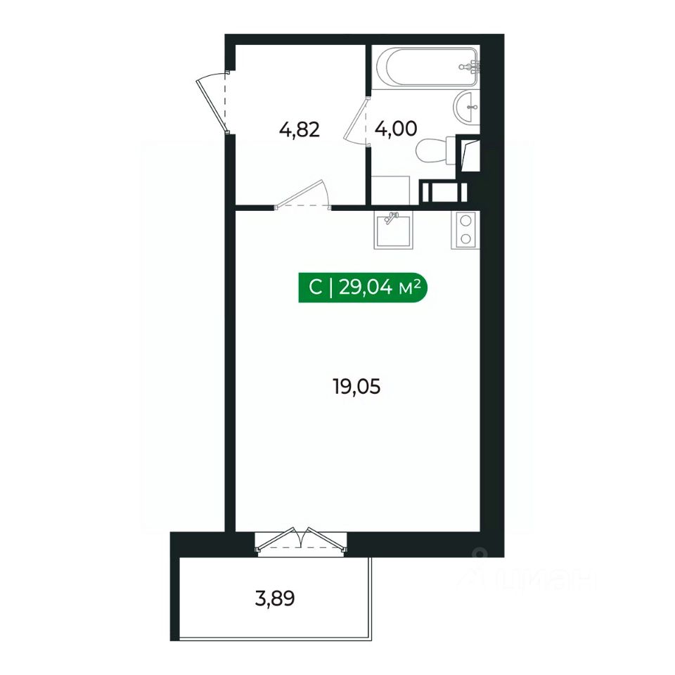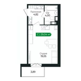 Напрямую продаётся квартира -студия 216 на 2 этаже (из 8) общей площадью 29,04 м2 в III очереди в жилом комплексе Сертолово Парк от застройщика ГК Алгоритм.