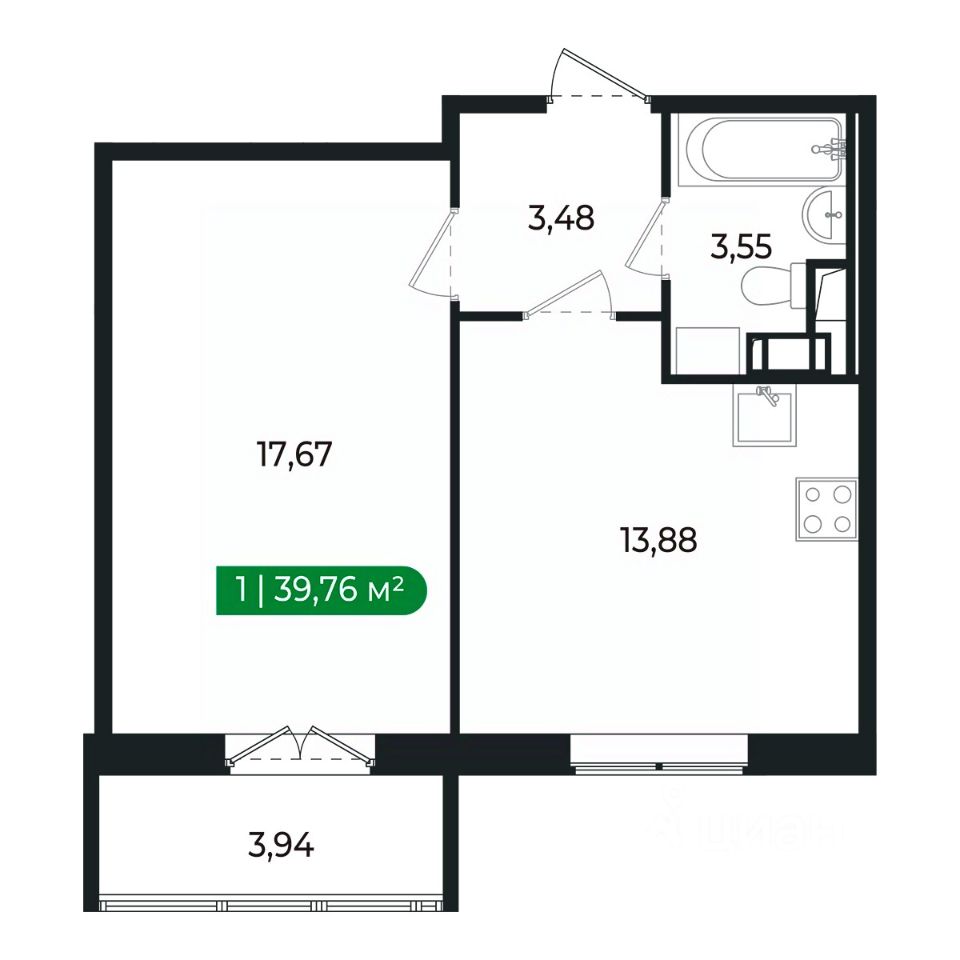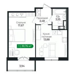 Напрямую продаётся 1 комнатная квартира 251 на 8 этаже (из 8) общей площадью 39,76 м2 в III очереди в жилом комплексе Сертолово Парк от застройщика ГК Алгоритм.